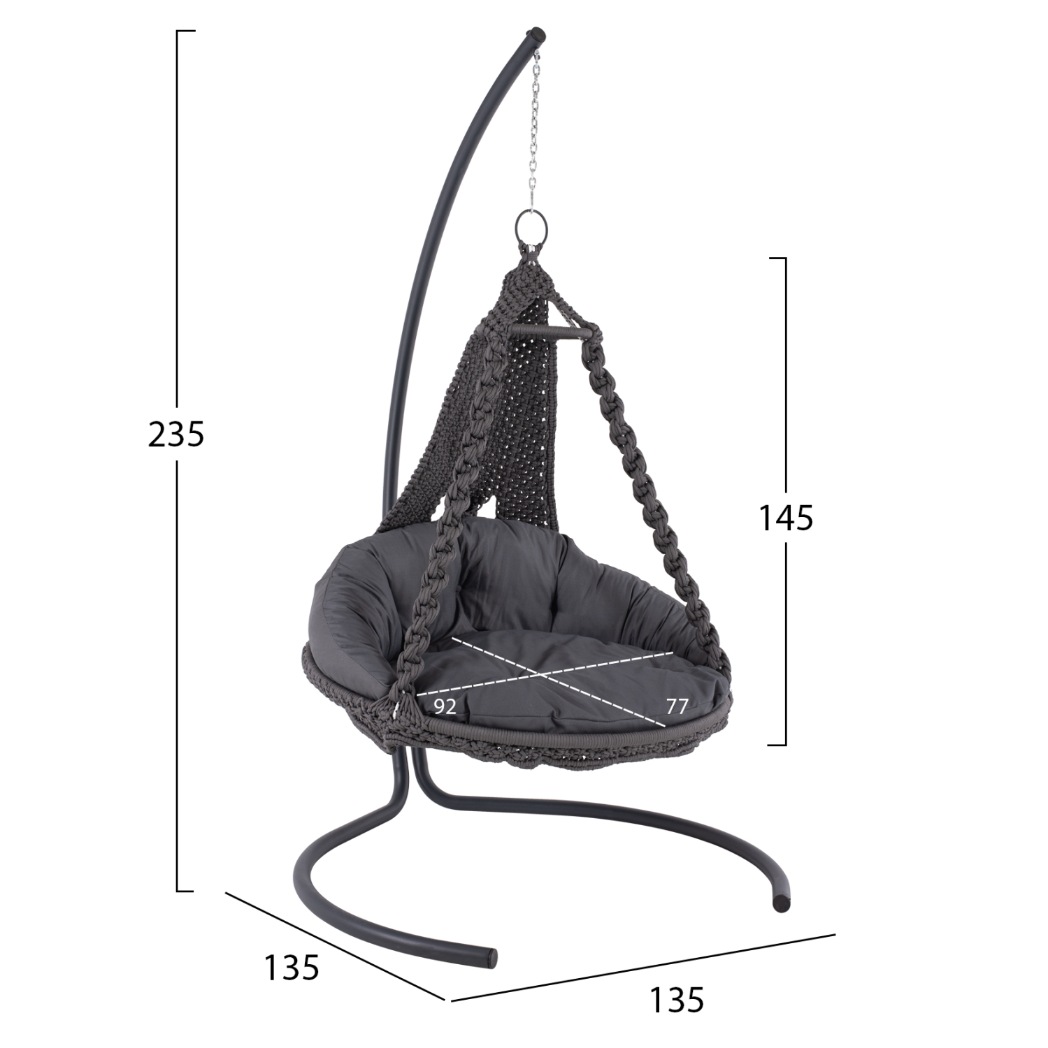 Η βάση της αιώρας είναι από ενισχυμένο μέταλλο με ηλεκτροστατική βαφή.