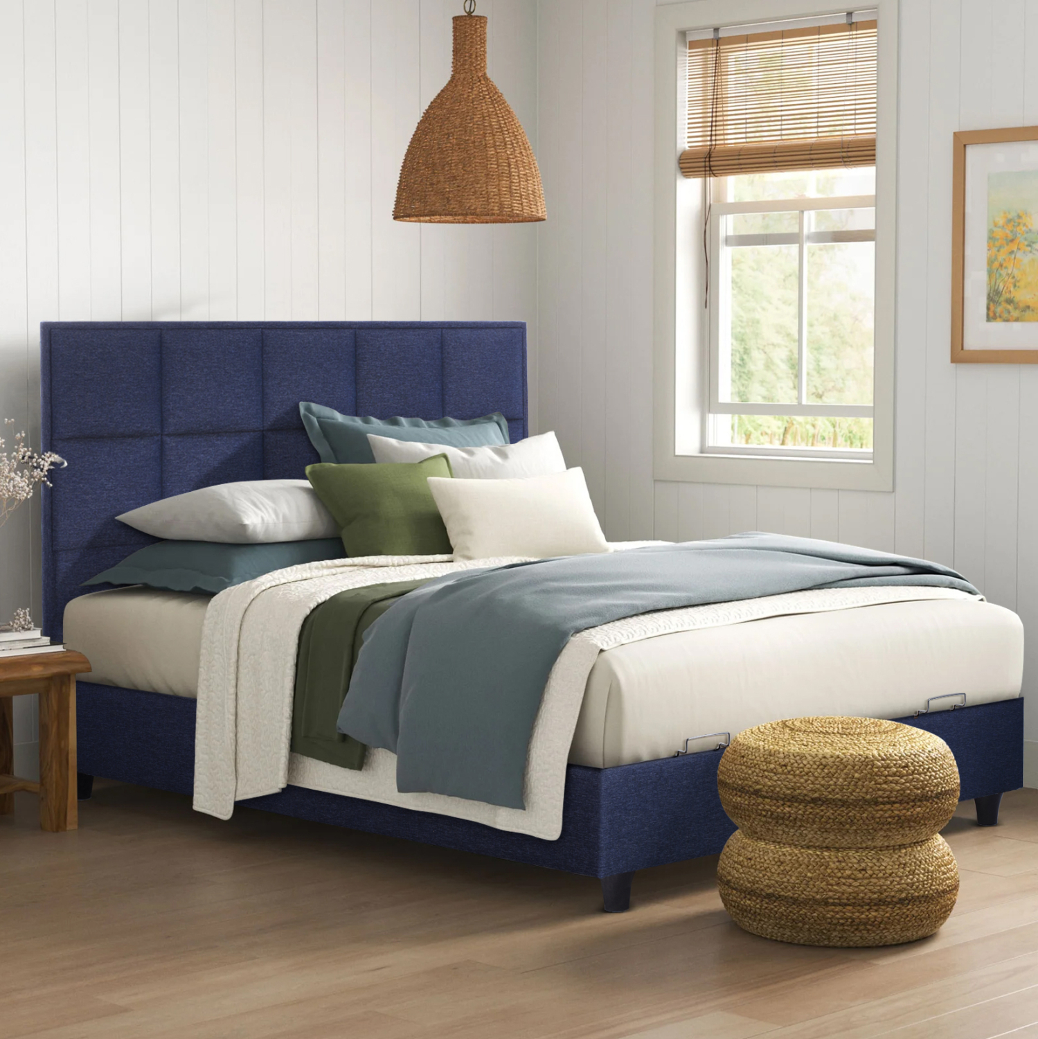 ΚΡΕΒΑΤΙ ALBA ΜΕ ΑΠΟΘΗΚΕΥΤΙΚΟ ΑΠΟ ΜΠΛΕ ΥΦΑΣΜΑ HM626.08 ΓΙΑ ΣΤΡΩΜΑ 160×200 εκ.
