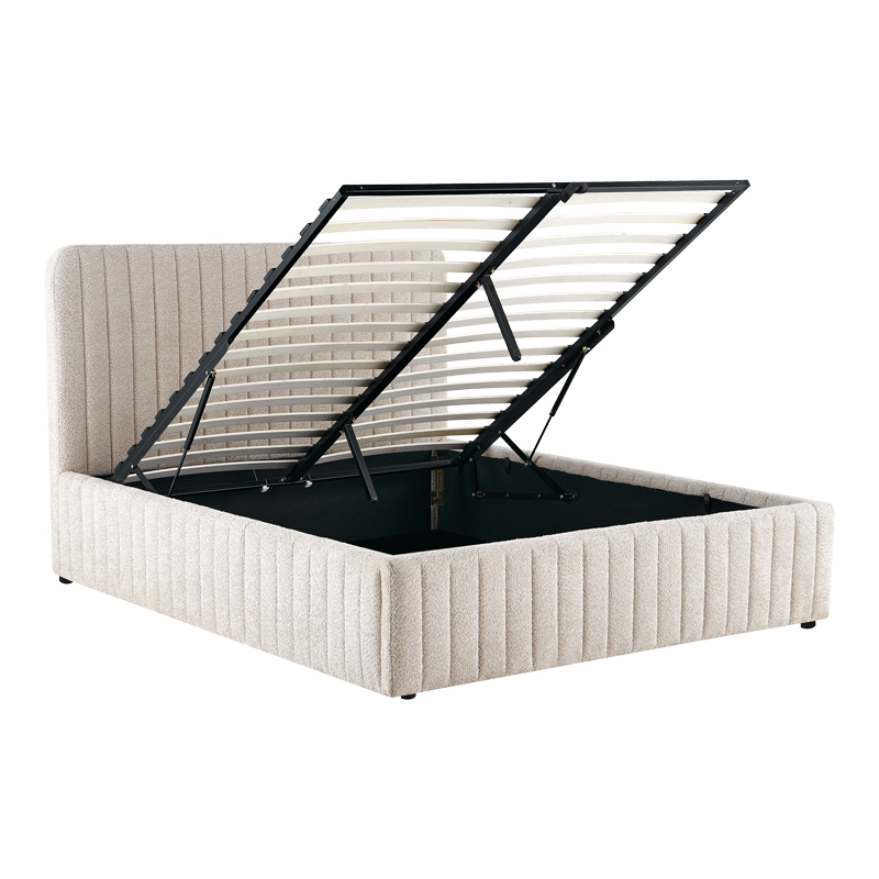 Κρεβάτι διπλό Zilin pakoworld ύφασμα μπουκλε μπεζ με αποθηκευτικό χώρο 160×200εκ