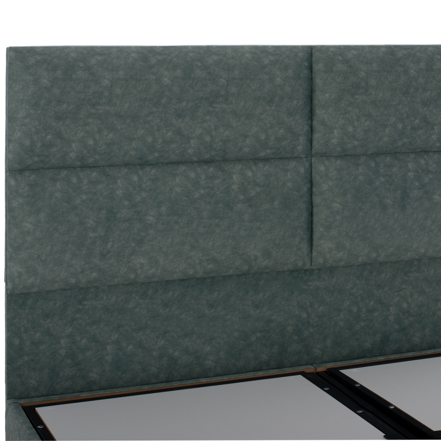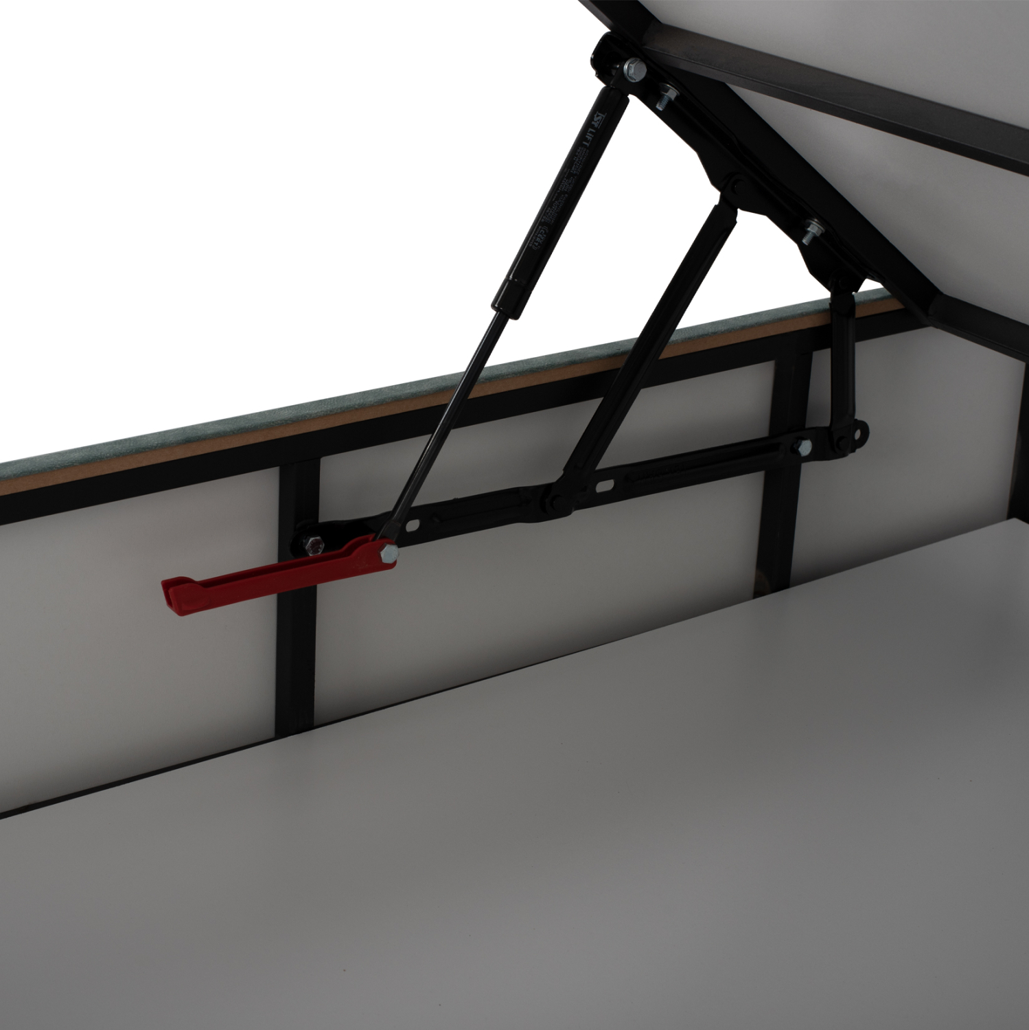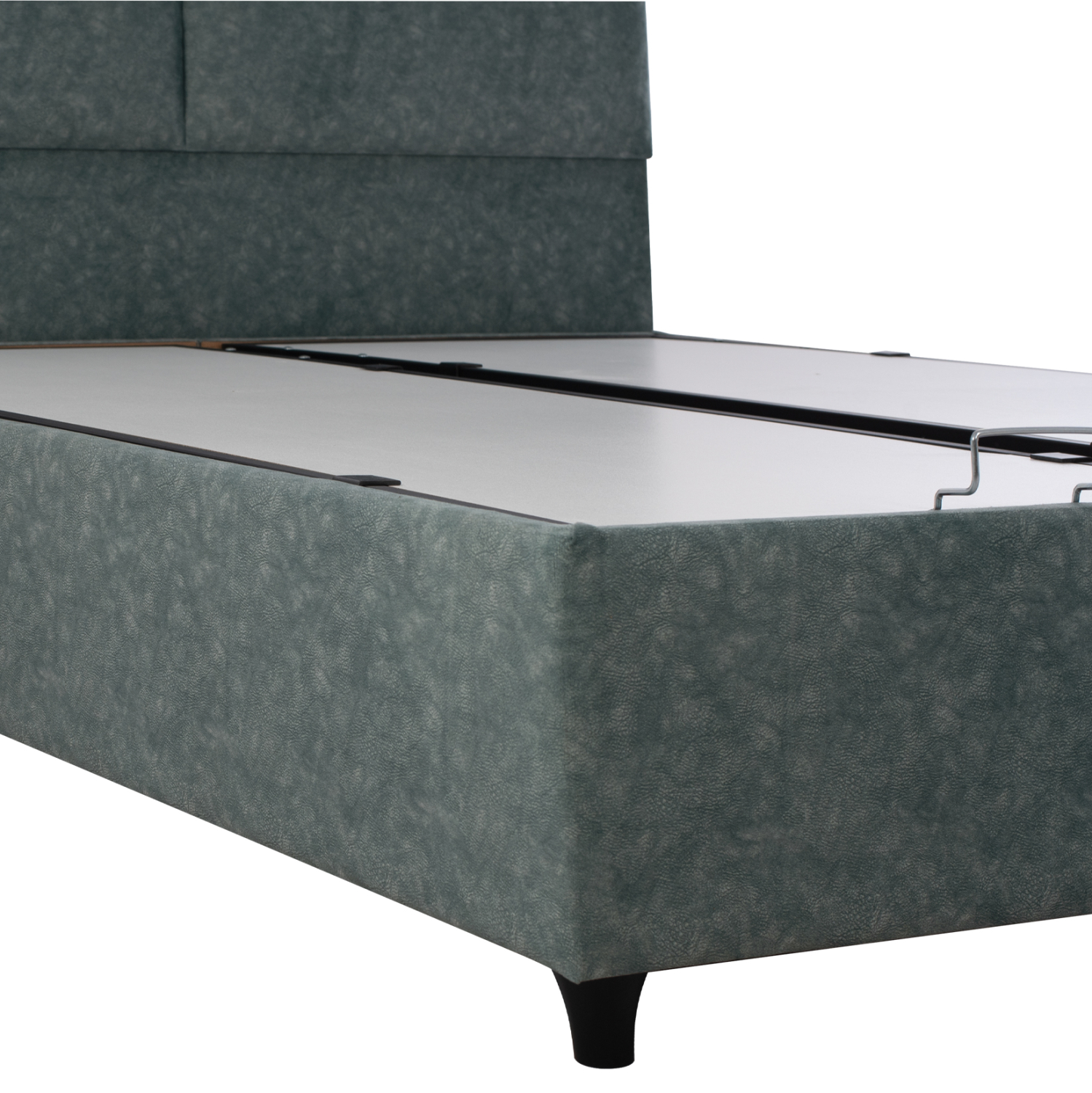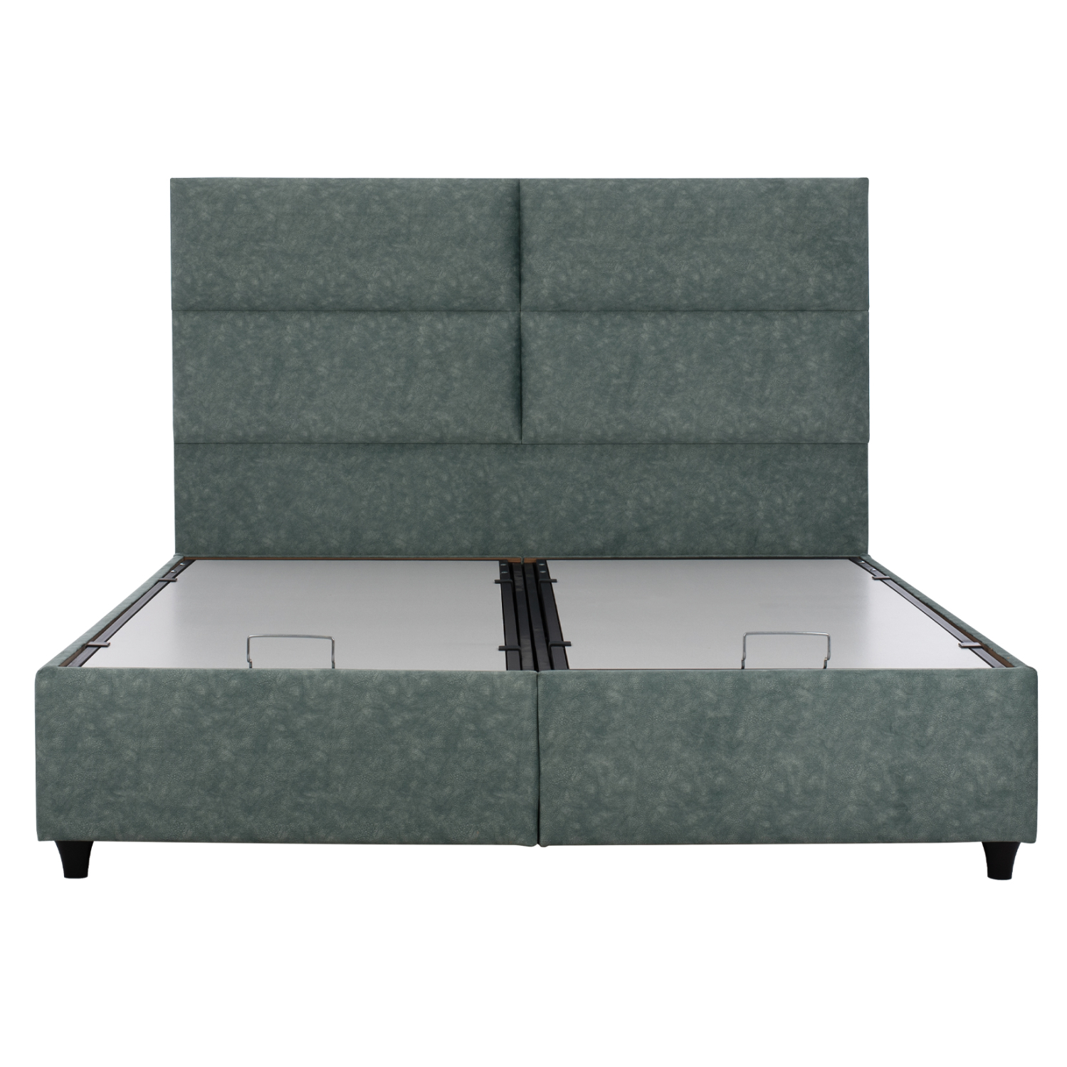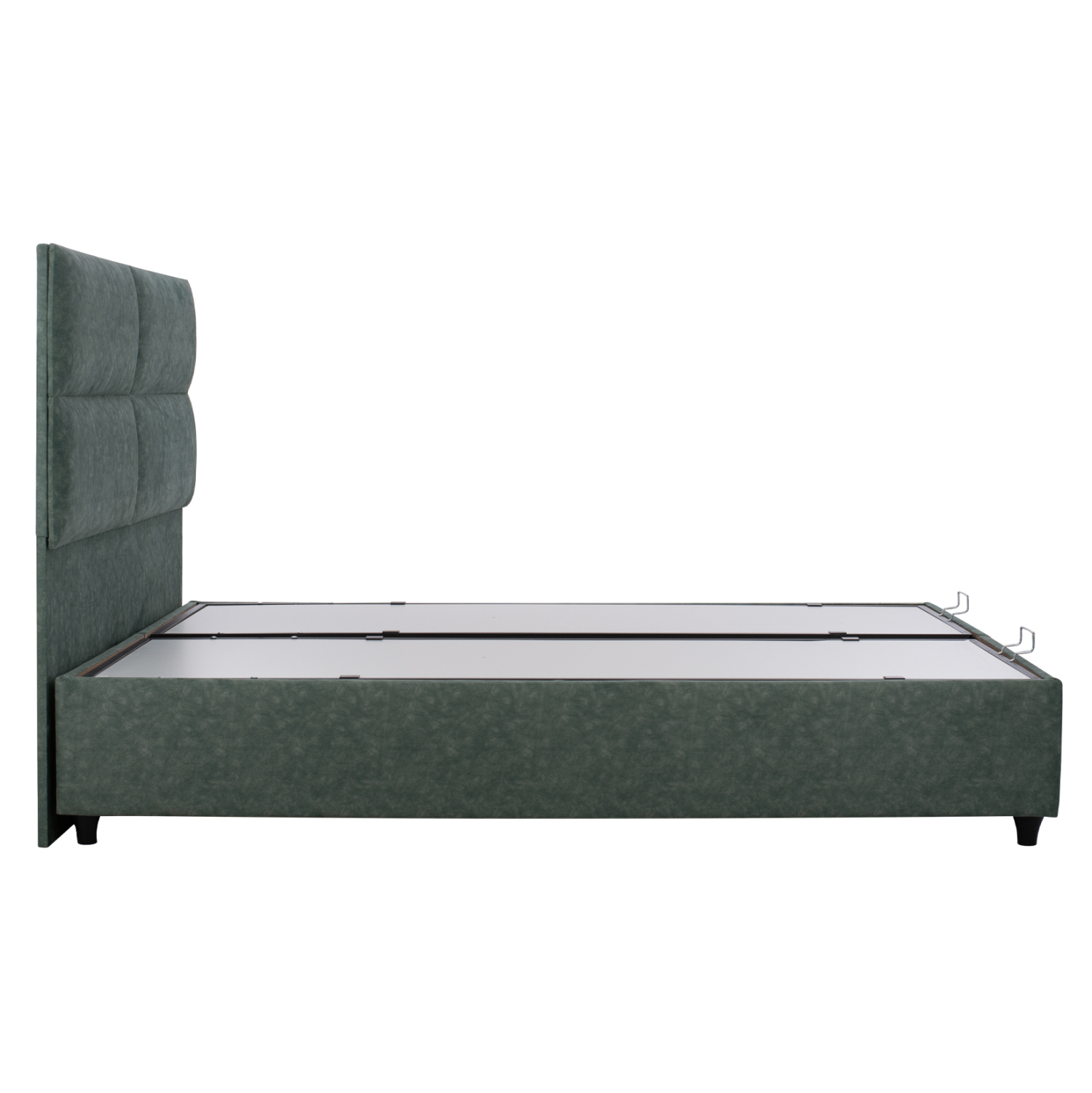 Το κρεβάτι MILO έχει ψηλό κεφαλάρι, επενδυμένο με καπιτονέ τεχνοτροπία σε μεγάλα ορθογώνια, ενώ και όλη η επένδυση του κρεβατιού είναι από ανάγλυφο ύφασμα τύπου NUBUCK. Το ΠΡΑΣΙΝΟ χρώμα σε όλο το κρεβάτι είναι όμορφο και μπορεί να συνδυαστεί με πληθώρα διακοσμητικών μοτίβων. Όμως, το κύριο χαρακτηριστικό αυτού του κρεβατιού είναι ότι δεν ακολουθεί την κλασική κατασκευή με τις τάβλες του σομιέ για την στήριξη του στρώματος, αλλά αντίθετα αποτελείται από μια συνεχόμενη επιφάνεια (2 μοριοσανίδες) πάνω στην οποία τοποθετείται το στρώμα! Επιπλέον, η κάθε επιφάνεια από μοριοσανίδα ανασηκώνεται με μεταλλικό μηχανισμό ασφαλείας με 4 αμορτισέρ και μεταλλικές λαβές προσφέροντας έναν μεγάλο αποθηκευτικό χώρο. Σε διαστάσεις στρώματος 160×200 εκ. θα χωρέσει κάθε σας όνειρο!