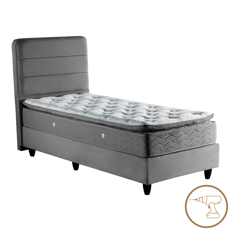 Κρεβάτι μονό Linteda pakoworld ανθρακί βελούδο 90×200εκ