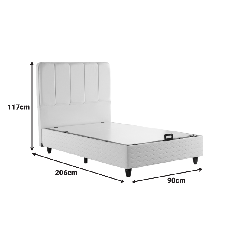 - Περιλαμβάνεται αποθηκευτικός χώρος ιδανικός για να φυλάσσετε παπλώματα, μαξιλάρια, εκτός εποχής ρούχα ή λευκά είδη, διατηρώντας τα πάντα τακτοποιημένα και προστατευμένα από τη σκόνη.