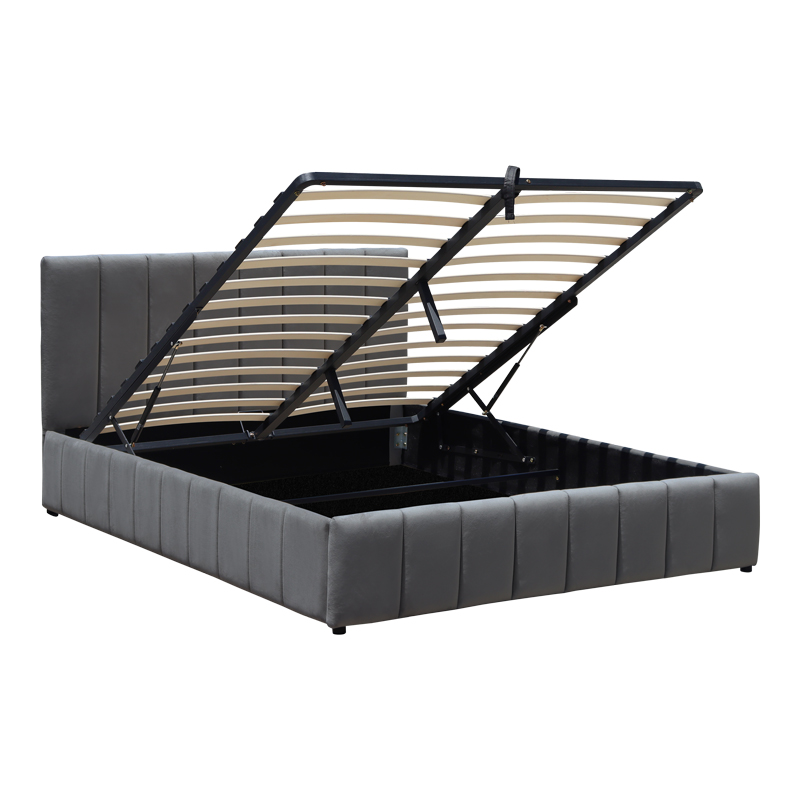 Το κρεβάτι διαθέτει έναν εύχρηστο μηχανισμό ανύψωσης του στρώματος, ο οποίος αποκαλύπτει έναν ευρύχωρο αποθηκευτικό χώρο από κάτω. Αυτό καθιστά εξαιρετικά εύκολη την τακτοποίηση κλινοσκεπασμάτων, μαξιλαριών, ρούχων εκτός εποχής ή άλλων αντικειμένων, συμβάλλοντας αποτελεσματικά στην οργάνωση και την τάξη του χώρου.