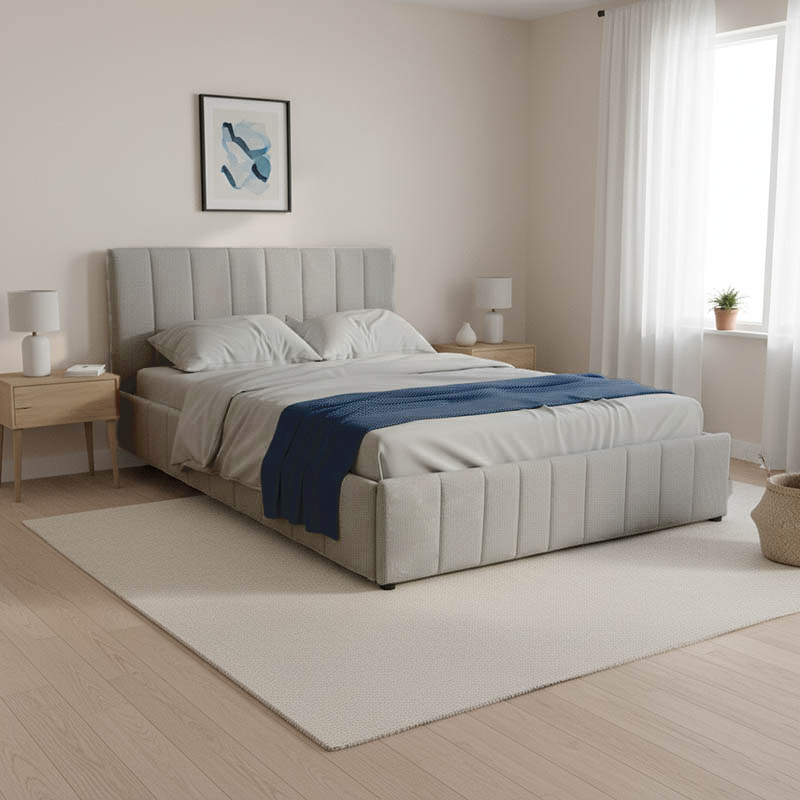 Το κρεβάτι διαθέτει έναν εύχρηστο μηχανισμό ανύψωσης του στρώματος, ο οποίος αποκαλύπτει έναν ευρύχωρο αποθηκευτικό χώρο από κάτω. Αυτό καθιστά εξαιρετικά εύκολη την τακτοποίηση κλινοσκεπασμάτων, μαξιλαριών, ρούχων εκτός εποχής ή άλλων αντικειμένων, συμβάλλοντας αποτελεσματικά στην οργάνωση και την τάξη του χώρου.