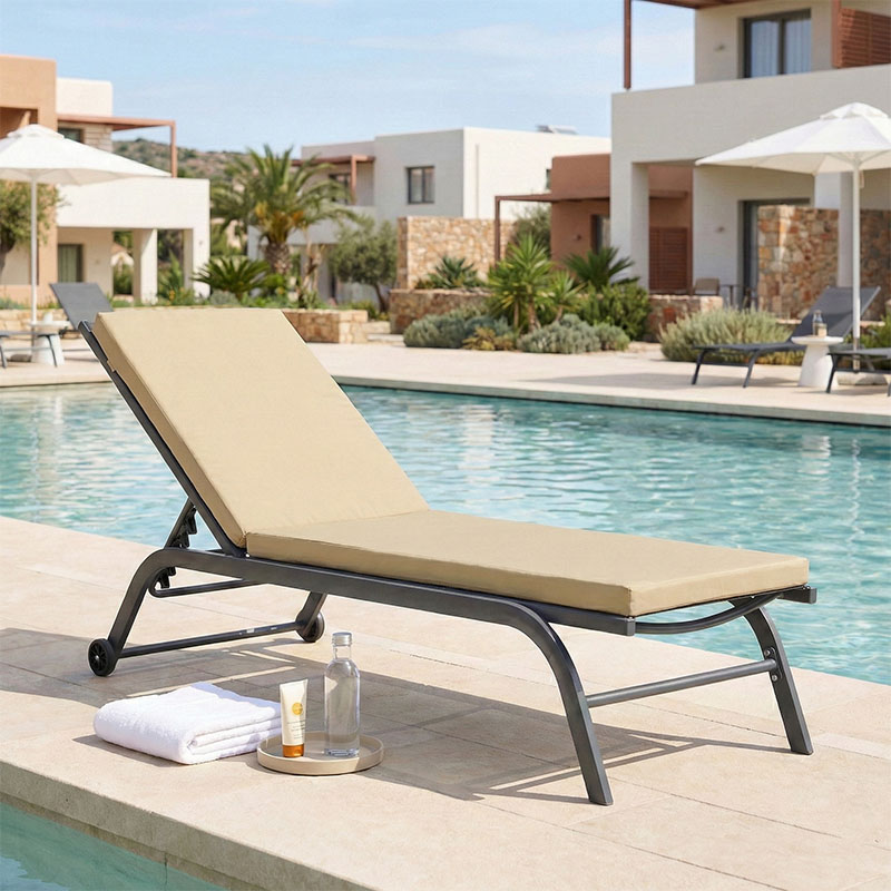 Μαξιλάρι ξαπλώστρας Sadie pakoworld ύφασμα μπεζ 65x185x7εκ