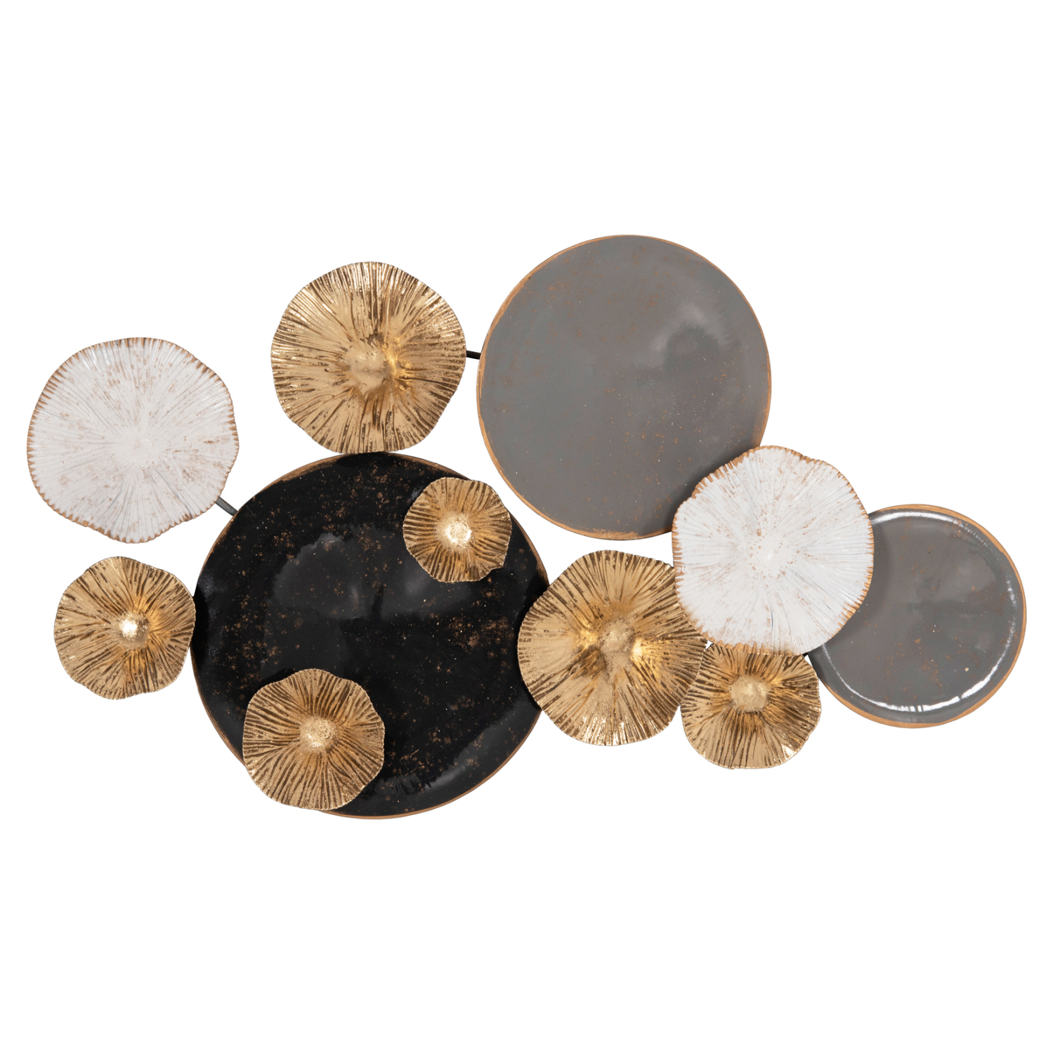 Διακοσμητικό τοίχου κατασκευασμένο από μέταλλο σε γκρι και χρυσή απόχρωση με εκρού και μαύρες λεπτομέρειες.