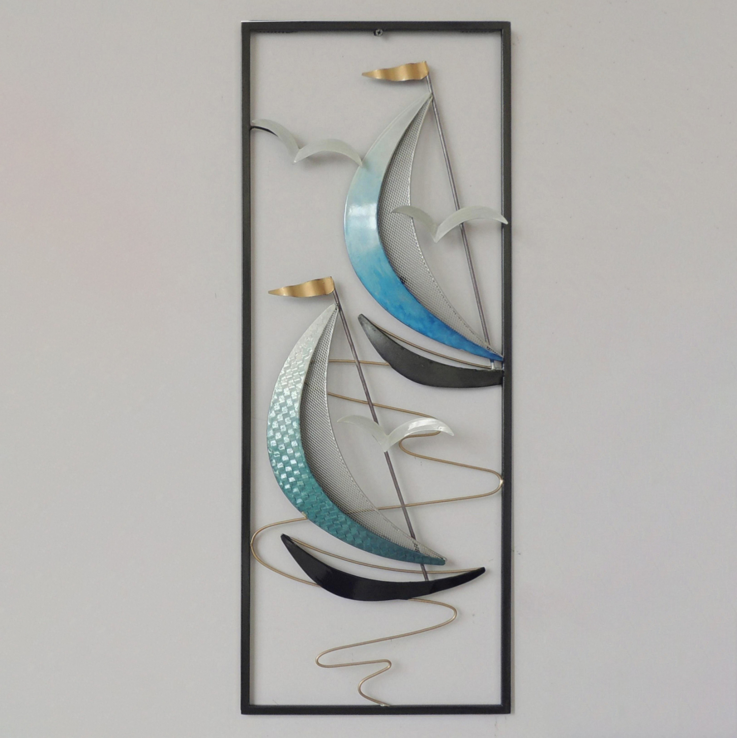 Μεταλλικό διακοσμητικό τοίχου σε μαύρη και γαλάζια απόχρωση με χρυσές και ασημί λεπτομέρειες.