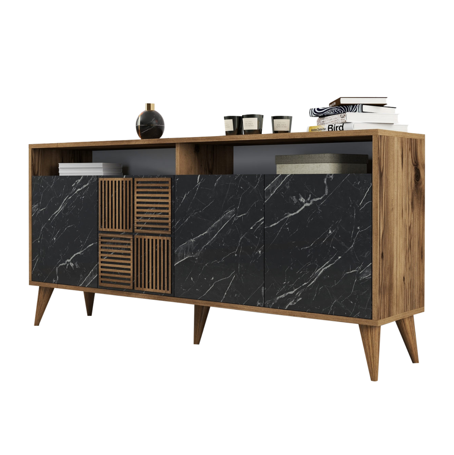ΜΠΟΥΦΕΣ ΜΕΛΑΜΙΝΗΣ ΚΑΡΥΔΙ ΜΕ ΟΨΗ ΜΑΥΡΟΥ ΜΑΡΜΑΡΟΥ HM9506.02 160x35x78Υ εκ.