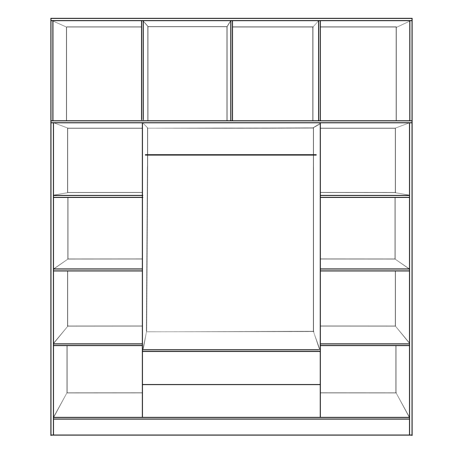 και στο κάτω μέρος υπάρχουν 2 μεγάλα συρτάρια για αποθήκευση ρούχων. Στα άλλα 2 φύλλα υπάρχουν 4 μεγάλοι χώροι αποθήκευσης.