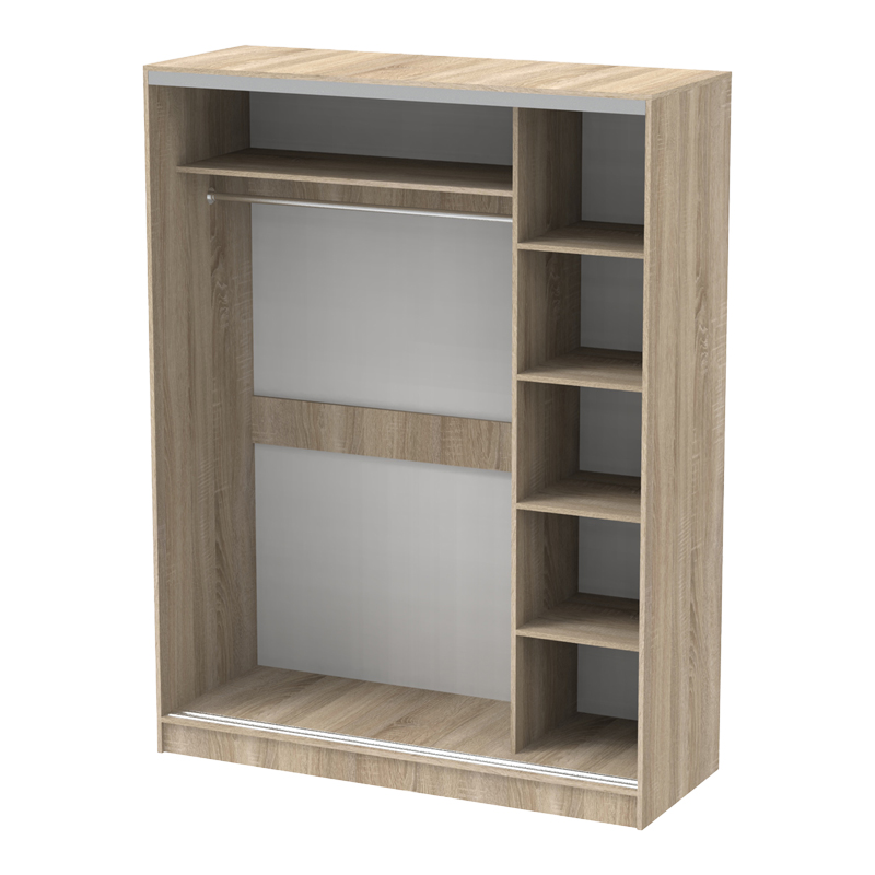 Ντουλάπα δίφυλλη συρόμενη με καθρέφτη Korredor Ι pakoworld σε sonoma απόχρωση 160x60x220εκ