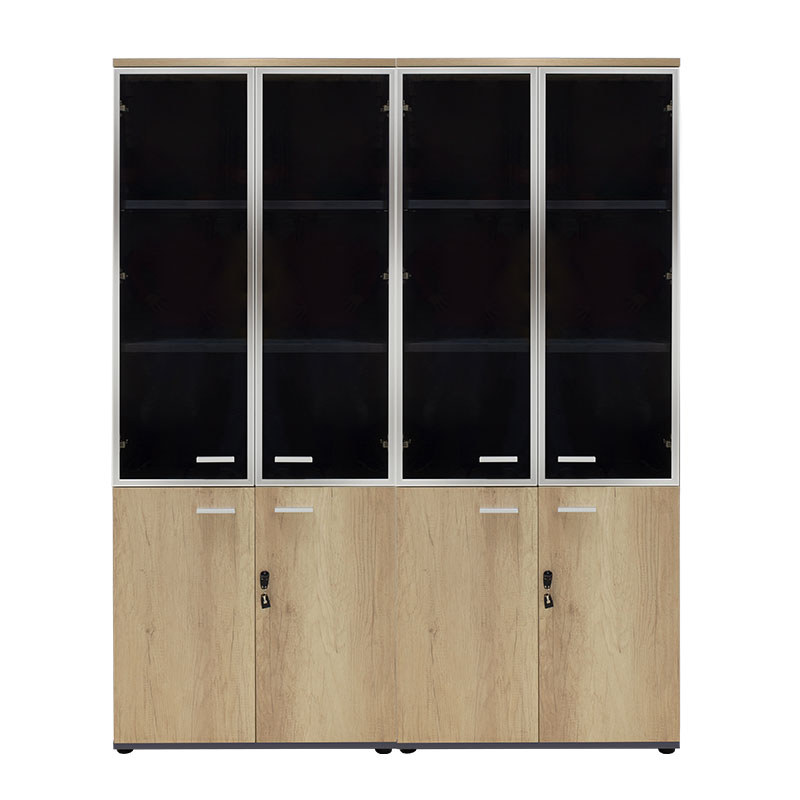 Nτουλάπα γραφείου τετράφυλλη με γυάλινες πόρτες Lotus pakoworld χρώμα φυσικό-ανθρακί 160×40,5×200εκ