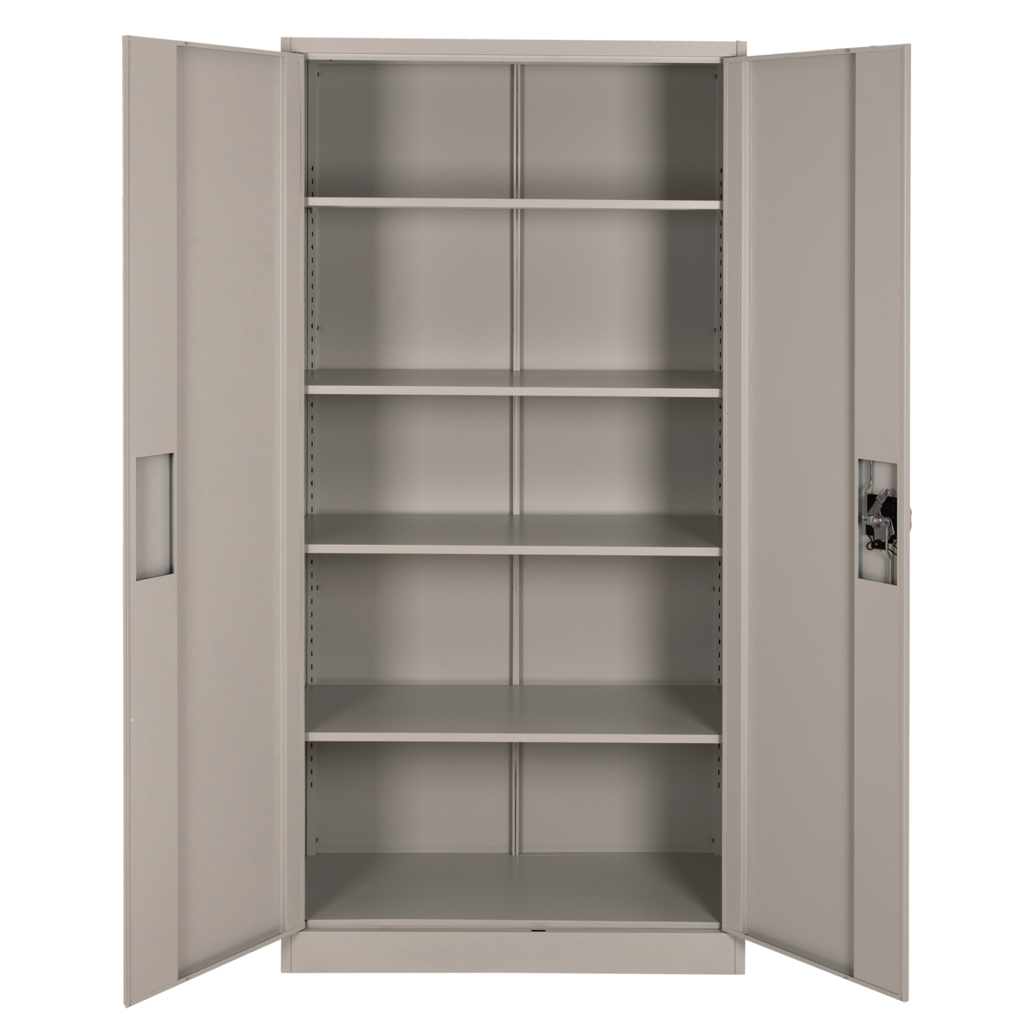 Η DURON είναι μια πρακτικότατη μεταλλική ντουλάπα που έχει φτιαχτεί με γνώμονα την χωρητικότητα και την ανθεκτικότητα. Είναι δίφυλλη με τις δύο πόρτες να κλείνουν ακριβώς στην μέση της κατασκευής, ενώ το εσωτερικό είναι ένας ενιαίος χώρος χωρίς κάθετα χωρίσματα. Διαθέτει 4 ράφια που δημιουργούν 5 αποθηκευτικούς χώρους. Οι πόρτες διαθέτουν κλειδαριά που κλειδώνει με κλειδί, ενώ το χρώμα της ντουλάπας είναι πολύ ανοιχτό γκρι.