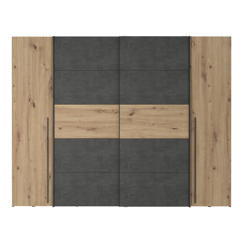 Ντουλάπα ρούχων Verzo pakoworld τετράφυλλη oak-ανθρακί μελαμίνης 270.5×61.5×210.5εκ