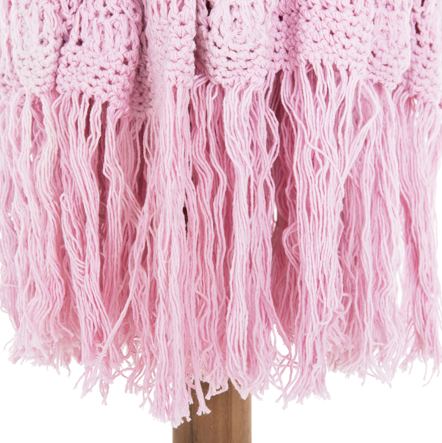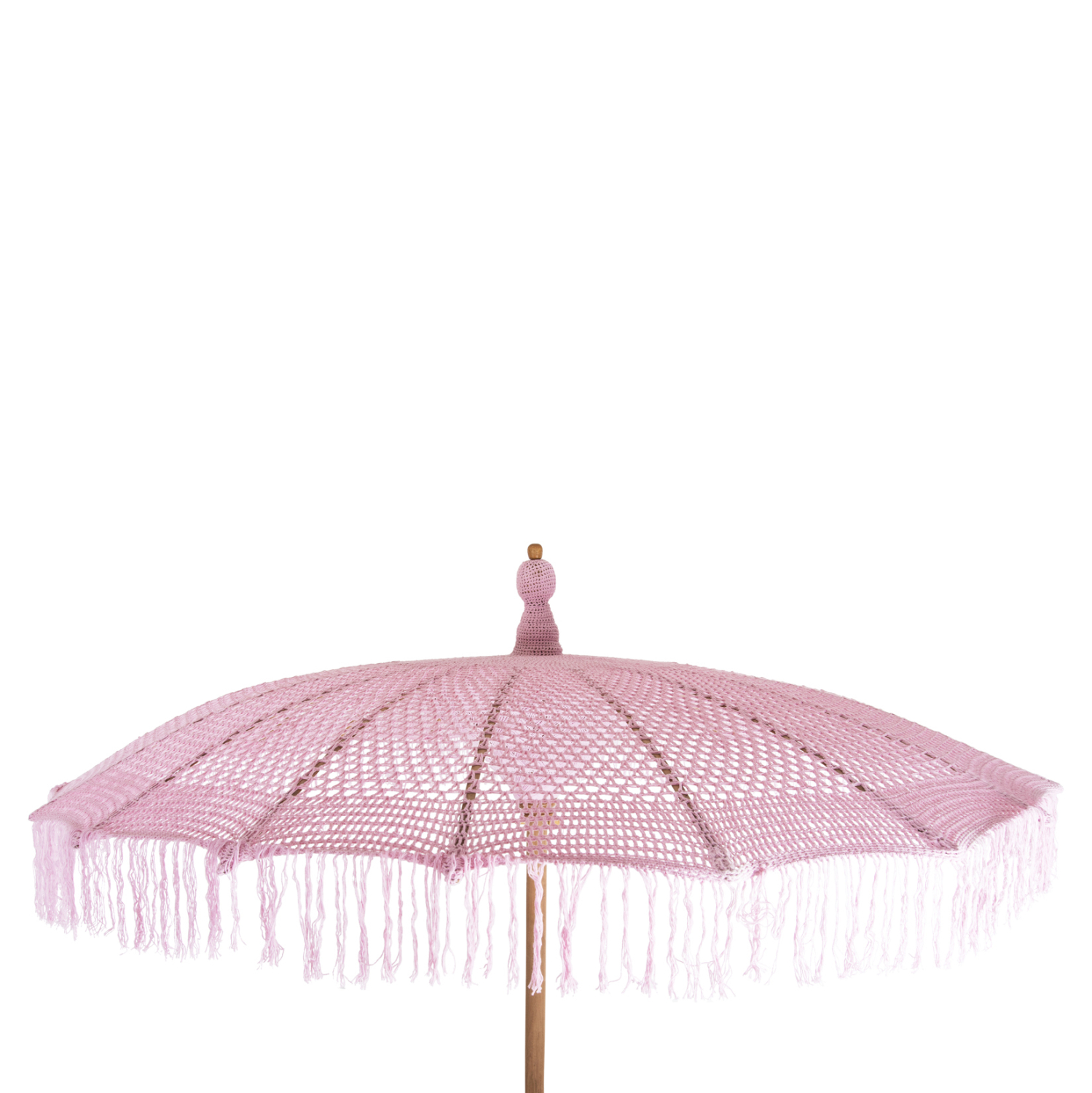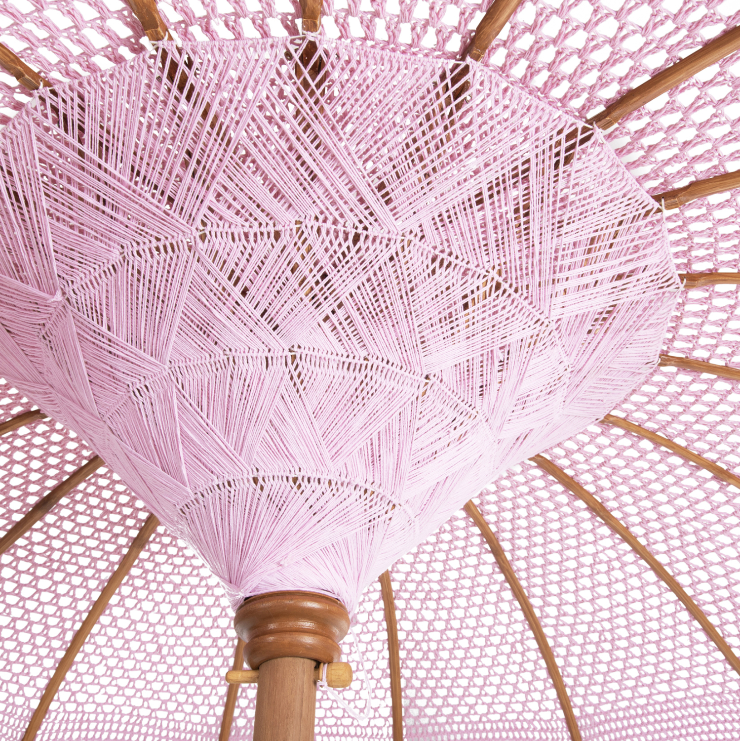 Η ομπρέλα πολυτελείας ΗΜ6035.04 είναι πραγματικά πανέμορφη. Ο στύλος της είναι από μασίφ ξύλο ΤΕΑΚ ενώ τα «μπράτσα» της ομπρέλας είναι από ξύλο BAMBOO. Το ιδιαίτερο χαρακτηριστικό, όμως, αυτής της εκπληκτικής ομπρέλας είναι ότι το σκίαστρό της είναι φτιαγμένο από μακραμέ σε ΡΟΖ χρώμα. Μια ομπρέλα που μπορεί να χρησιμοποιηθεί με πολλούς τρόπους κυρίως σε επαγγελματικούς χώρους και να προσφέρει με τις διαστάσεις της σκίαση με…στυλ!