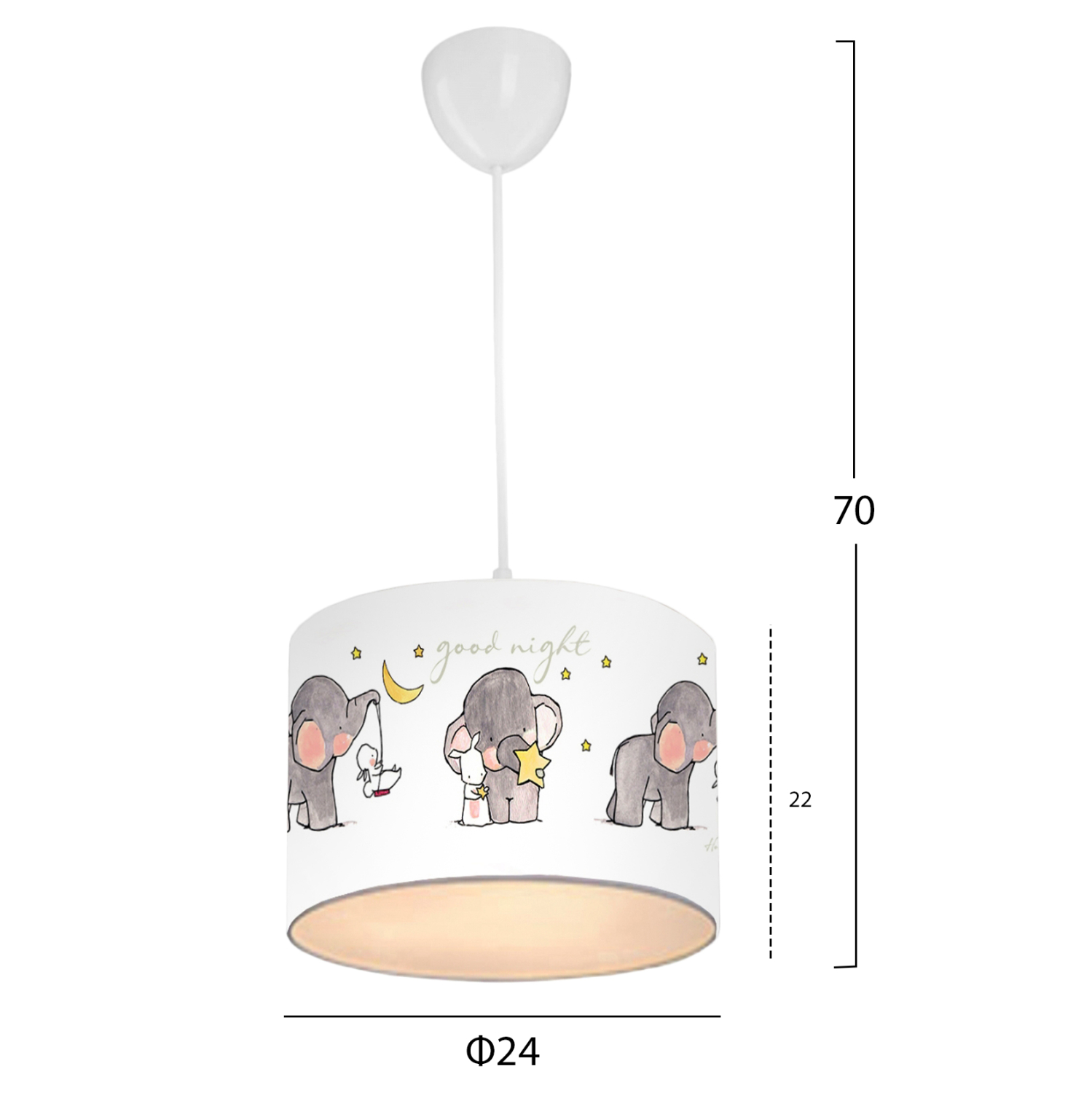 Παιδικό φωτιστικό οροφής,υφασμάτινο, σε λευκή απόχρωση,με σχέδιο Elephant.
