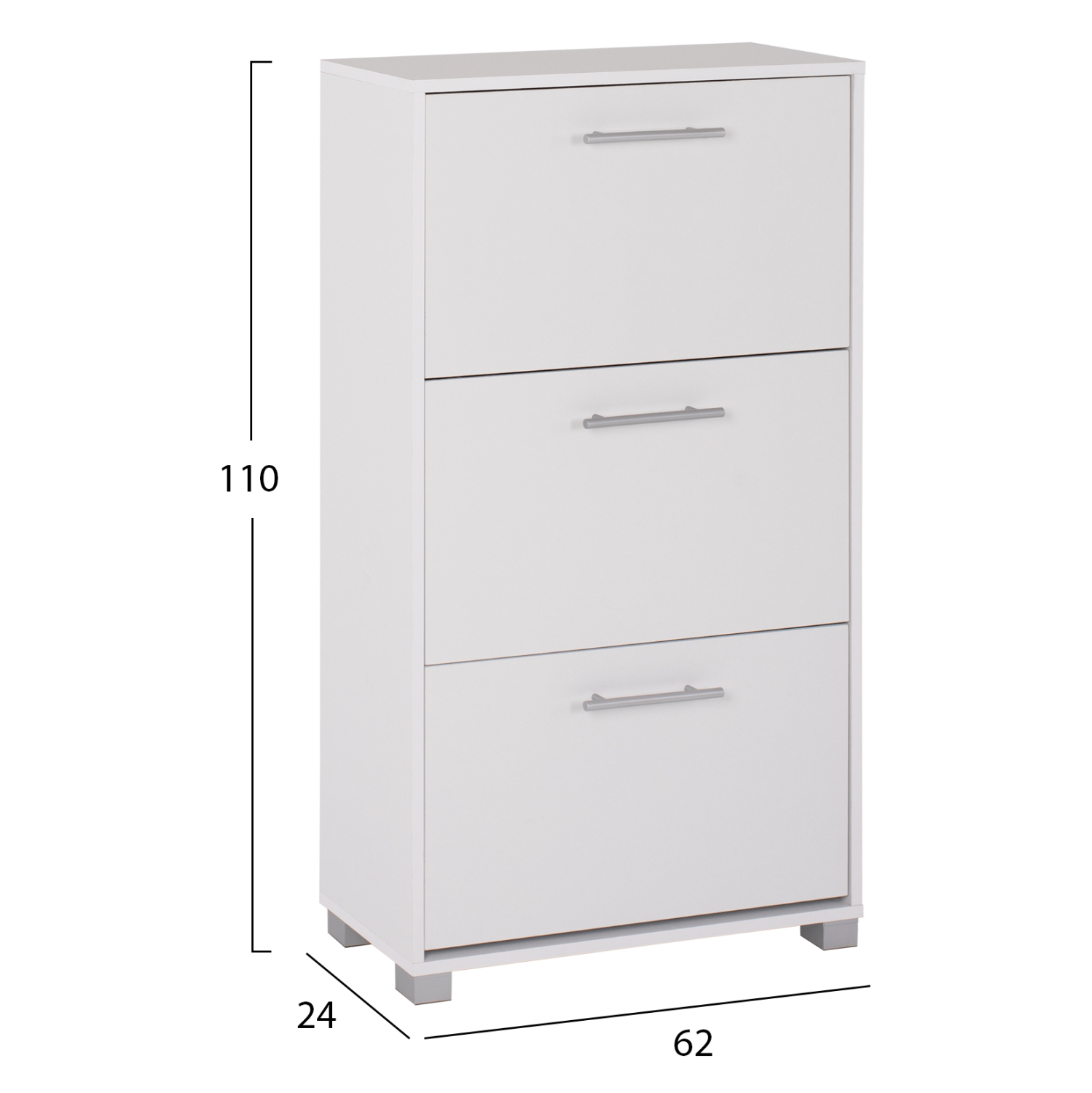 Σας αρέσει να είστε τακτοποιημένοι και καθαροί; Σας παρουσιάζουμε την παπουτσοθήκη μελαμίνης DAVINA σε ΛΕΥΚΟ χρώμα με γκρι πόδια, με 3 επίπεδα που ανοίγουν με όμορφα γκρι χερούλια. Το κάθε επίπεδο έχει ένα ράφι που δημιουργεί δύο χώρους για κάθετη τοποθέτηση των παπουτσιών. Σκοπός μας είναι να σας βοηθήσουμε να οργανώσετε και να βελτιώσετε με τον καλύτερο δυνατό τρόπο την λειτουργικότητα του σπιτιού σας.