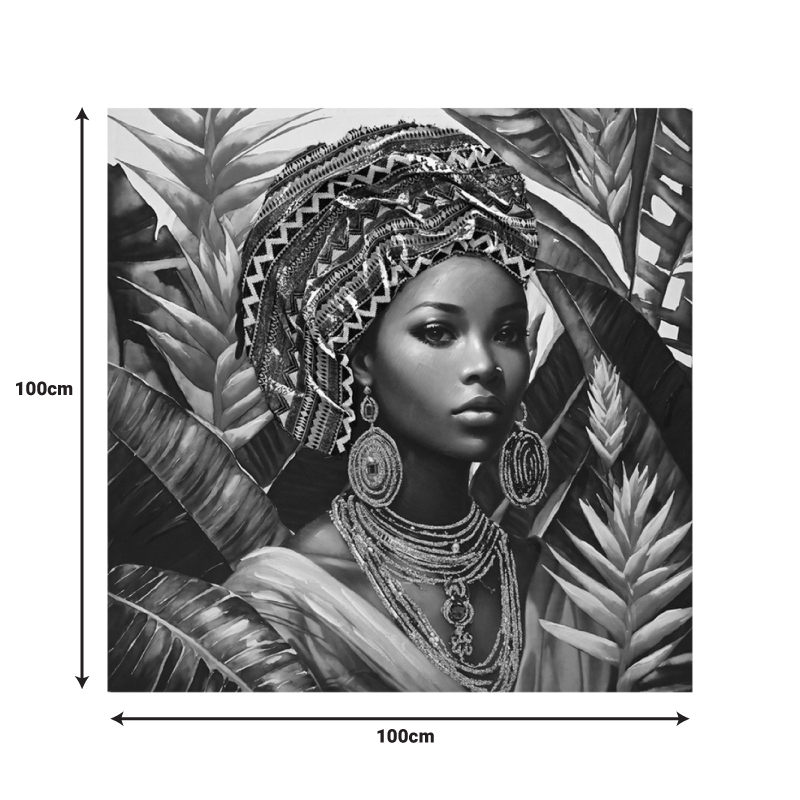 Ο πίνακας σε καμβά Gangalo είναι ένα όμορφο και εντυπωσιακό έργο τέχνης που γιορτάζει την ομορφιά, την πολιτισμική ταυτότητα και τη σύνδεση με τη φύση. Τα τροπικά φυτά δημιουργούν ένα πλούσιο και ζωντανό φόντο, ενισχύοντας την αίσθηση της εξωτικής ομορφιάς.
