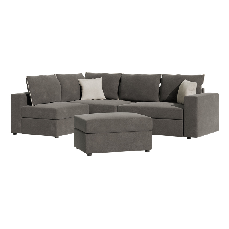 - Μπορεί να τοποθετηθεί ως γωνιακός καναπές μικρότερης διάστασης από τις δύο πρώτες επιλογές (194x122x95εκ), διαθέτοντας το άλλο κομμάτι ως σκαμπό.