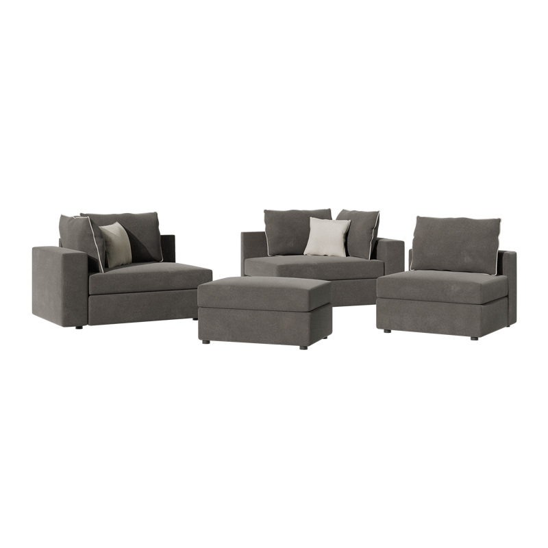 - Μπορεί να τοποθετηθεί ως πολυθρόνες και σκαμπό (97x61x95εκ το καθένα), δηλαδή ξεχωριστά όλα τα τεμάχια που αποτελούν τον καναπέ.