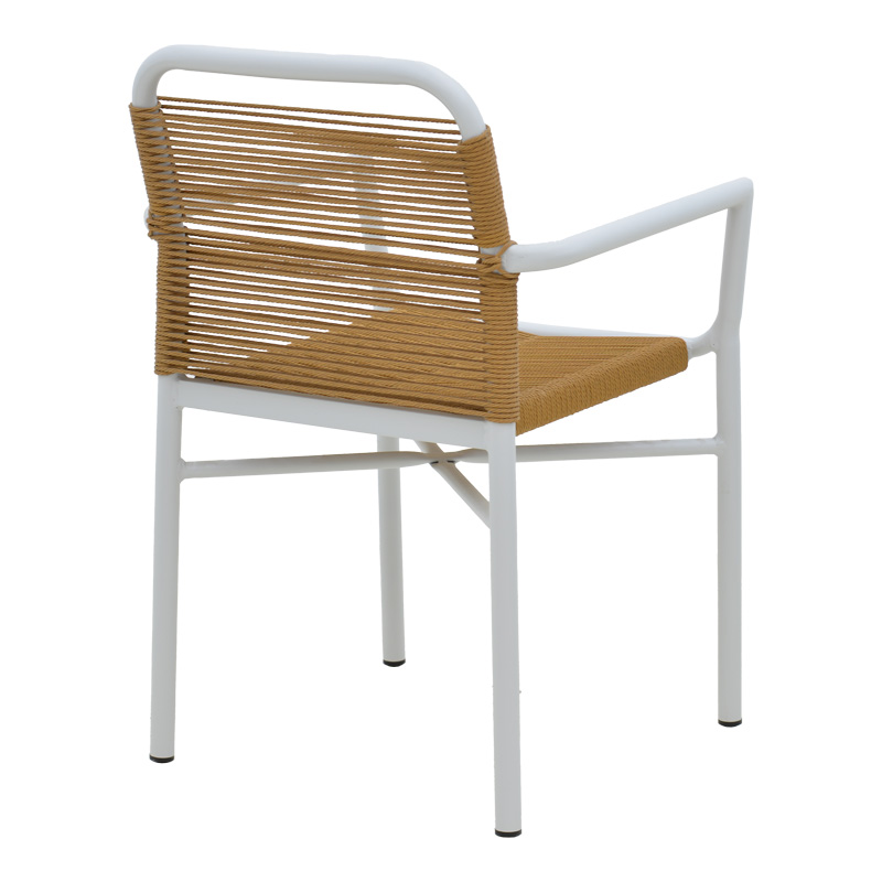 * Κυρίως σώμα καρέκλας από ρατάν. Η κύρια ιδιότητα του ράταν είναι η ευελιξία του, καθώς μπορεί να πλεκτεί και να διαμορφωθεί εύκολα. Επίσης, είναι ανθεκτικό και αντέχει στις καιρικές συνθήκες, καθιστώντας το ιδανικό για επιπλέον εξωτερικούς χώρους.