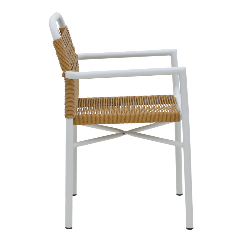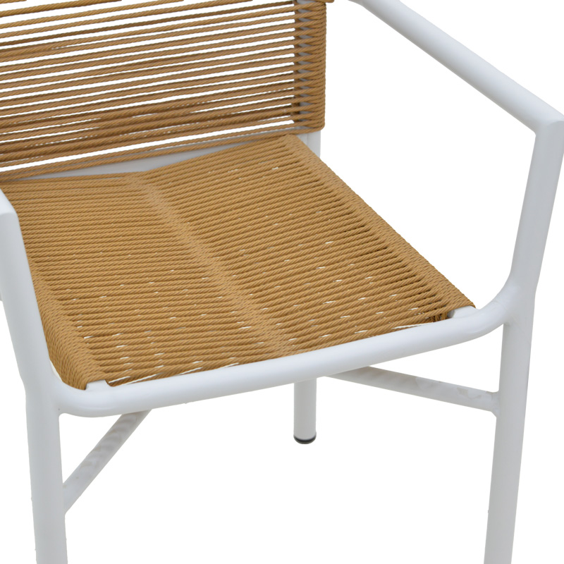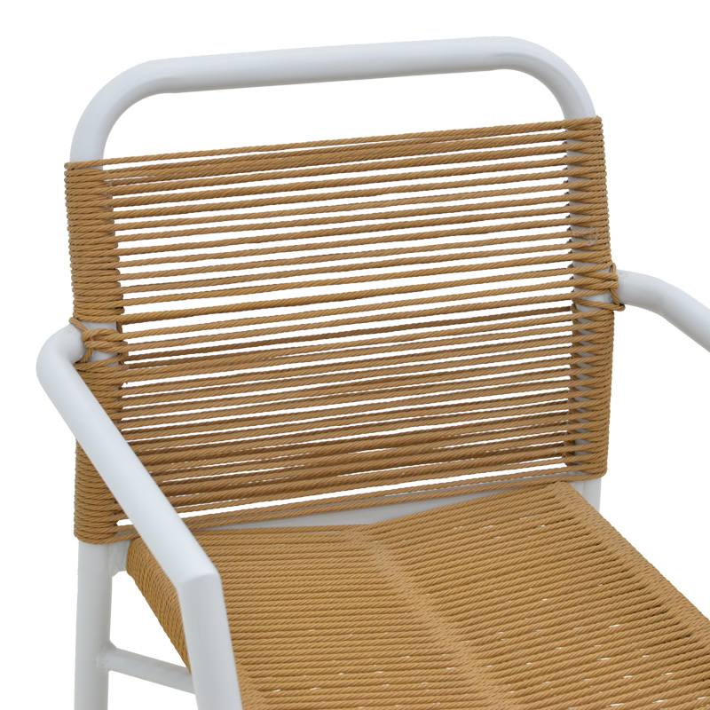 Πολυθρόνα αλουμινίου Clutch pakoworld στοιβαζόμενη λευκός σκελετός-φυσικό rattan 55x56x80εκ