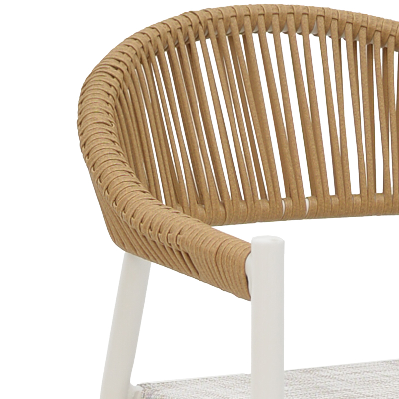 Πολυθρόνα αλουμινίου Elation pakoworld στοιβαζόμενη λευκός σκελετός-textilene γκρι και rattan σε φυσική απόχρωση 56x52x76εκ