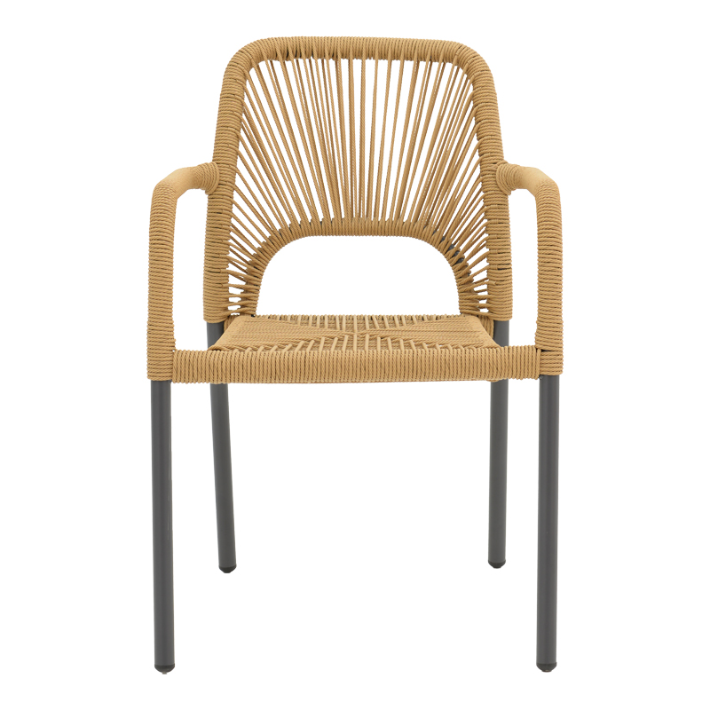 Πολυθρόνα αλουμινίου Norture pakoworld στοιβαζόμενη ανθρακί σκελετός-pe rattan σε φυσική απόχρωση 57x63x82εκ