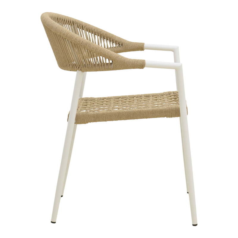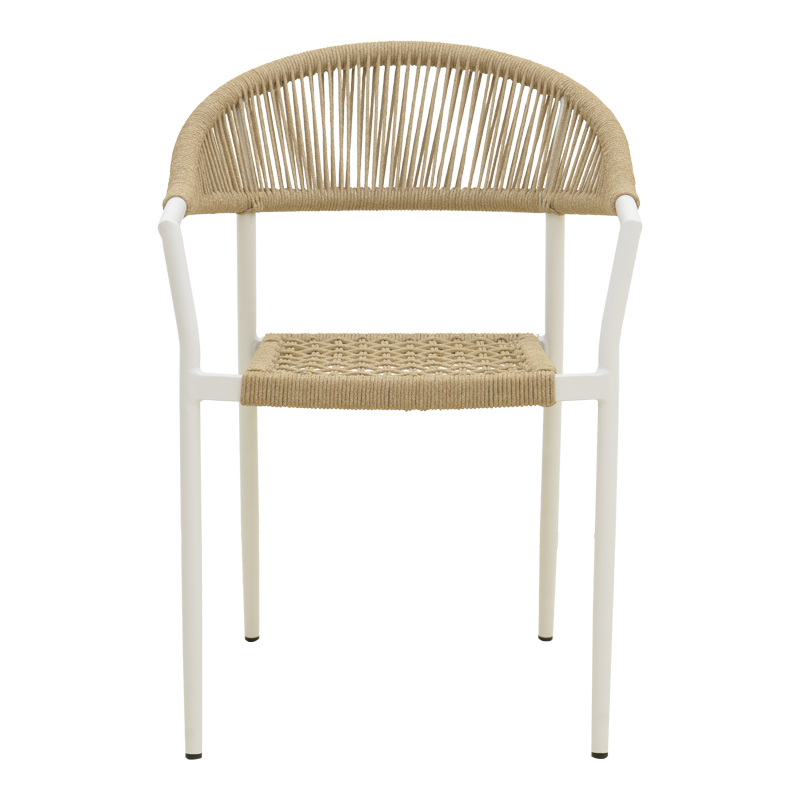 Πολυθρόνα Ammos pakoworld στοιβαζόμενη αλουμίνιο σε λευκή- pe σχοινί σε φυσική απόχρωση 56×61.5×82εκ