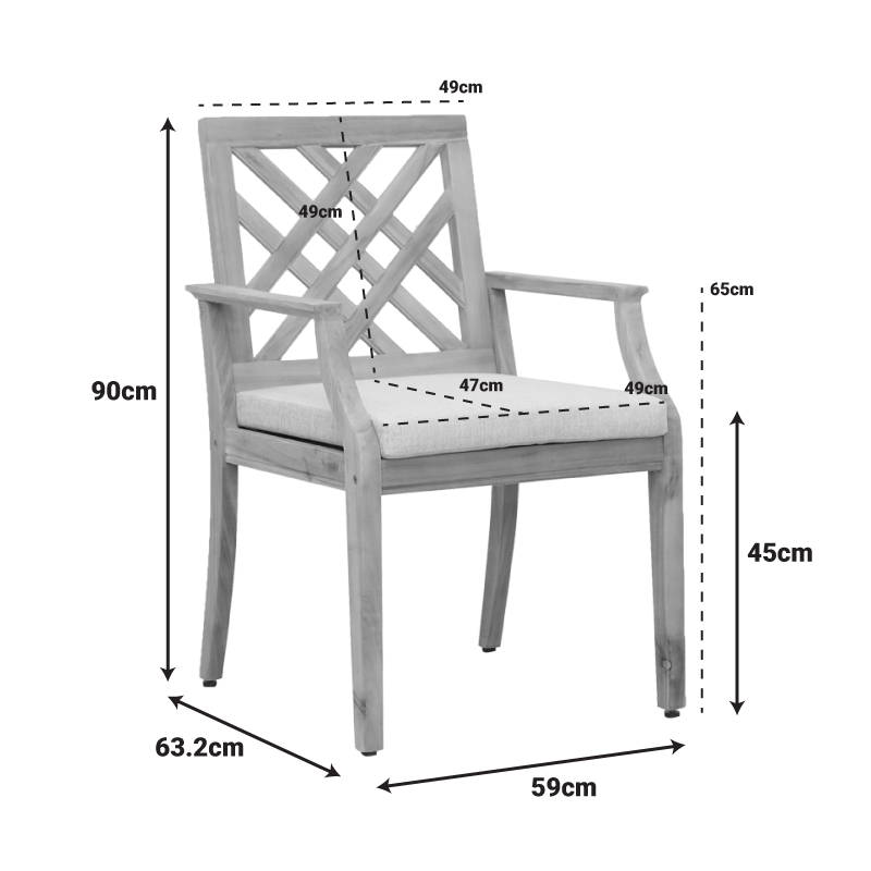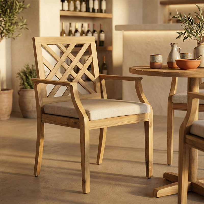 - Σκελετός κατασκευασμένος από ενισχυμένο ξύλο ακακίας. Το ξύλο ακακίας είναι σκληρό και ανθεκτικό στη φθορά, κάνοντάς το κατάλληλο για επίπλωση και χρήση σε εξωτερικούς χώρους. Είναι γνωστό για την ανθεκτικότητά του, την ομορφιά που προσφέρει το φυσικό του χρώμα και την αντοχή του. Χρησιμοποιείται ευρέως στην κατασκευή επίπλων, δαπέδων, επιφανειών εργασίας και εξωτερικών δομών όπως κήποι και μπαλκόνια.
