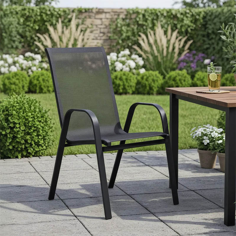 - Σταθερός σκελετός από μέταλλο με αντοχή στην καταπόνηση και στη φθορά. Κυρίως σώμα καρέκλας από εξαιρετικής ποιότητας textilene. Το textilene είναι ύφασμα μεγάλης αντοχής στην ηλιακή ακτινοβολία και την υγρασία ενώ παράλληλα αφήνει το δέρμα να “αναπνέει” δημιουργώντας έτσι άνεση στο κάθισμα.