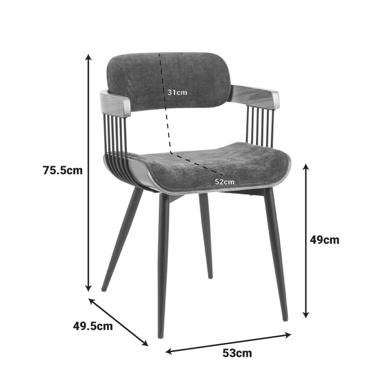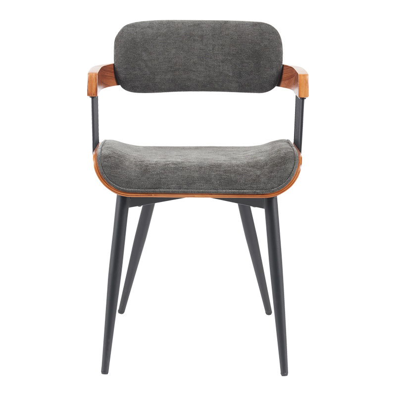 Η πολυθρόνα τραπεζαρίας Cameo συνδυάζει αρμονικά τη σύγχρονη αισθητική με την άνεση. Διαθέτει ένα καμπυλωτό κάθισμα και πλάτη, επενδυμένα με ένα απαλό ύφασμα που προσφέρει εξαιρετική άνεση για παρατεταμένα γεύματα. Οι λεπτομέρειες από φυσικό ξύλο στα μπράτσα προσθέτουν μια ζεστή, οργανική αίσθηση και προσφέρουν μια ενδιαφέρουσα οπτική αντίθεση και υποστήριξη. Τα μεταλλικά πόδια  ολοκληρώνουν την εκλεπτυσμένη εμφάνιση, προσδίδοντας σταθερότητα αλλά και μια αίσθηση ελαφρότητας.