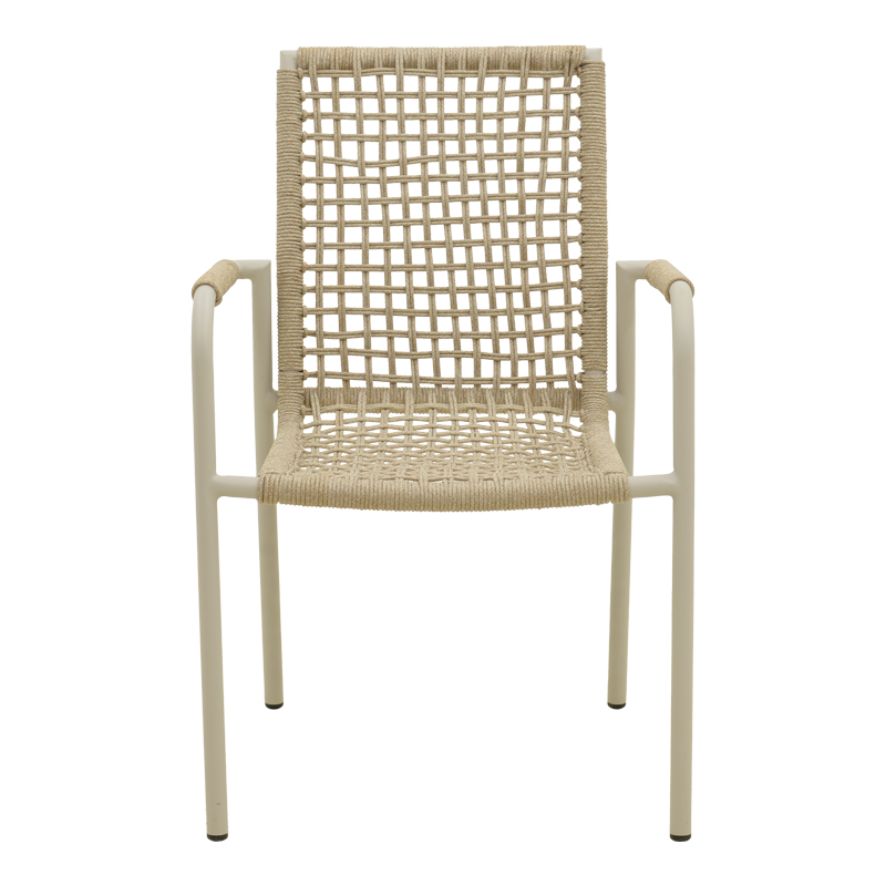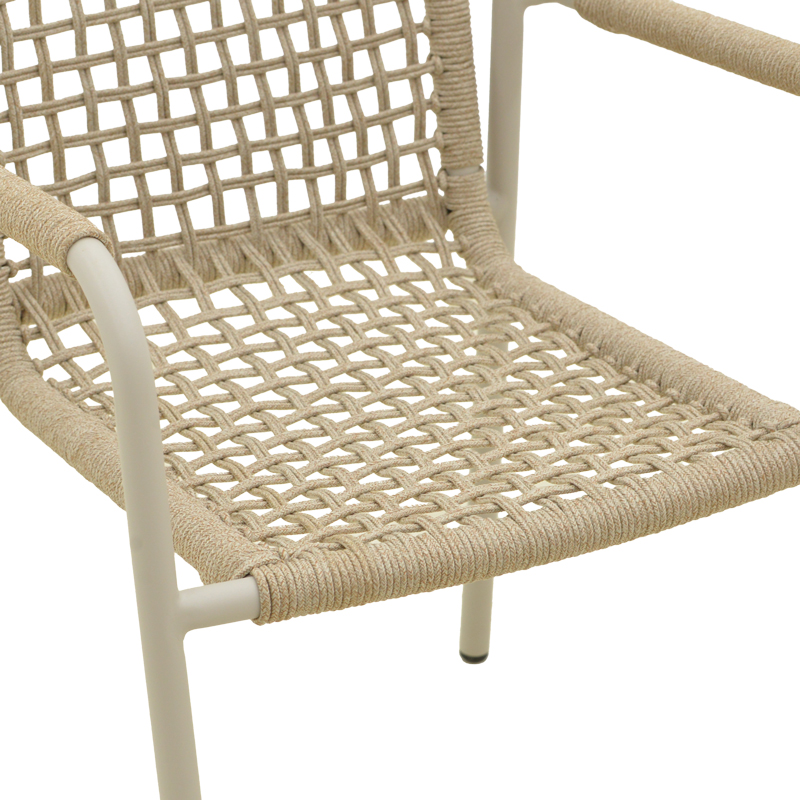 Πολυθρόνα Esence pakoworld στοιβαζόμενη αλουμίνιο cappuccino με pe σχοινί σε μπεζ απόχρωση 56×61,5×87,5εκ