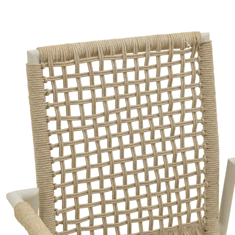 - Μοναδική Πλέξη Σχοινιού: Η πλέξη από ανθεκτικό σχοινί (Ø5mm) προσφέρει όχι μόνο μια ξεχωριστή αισθητική, αλλά και άνεση χωρίς την ανάγκη για επιπλέον μαξιλάρια.