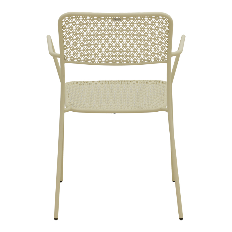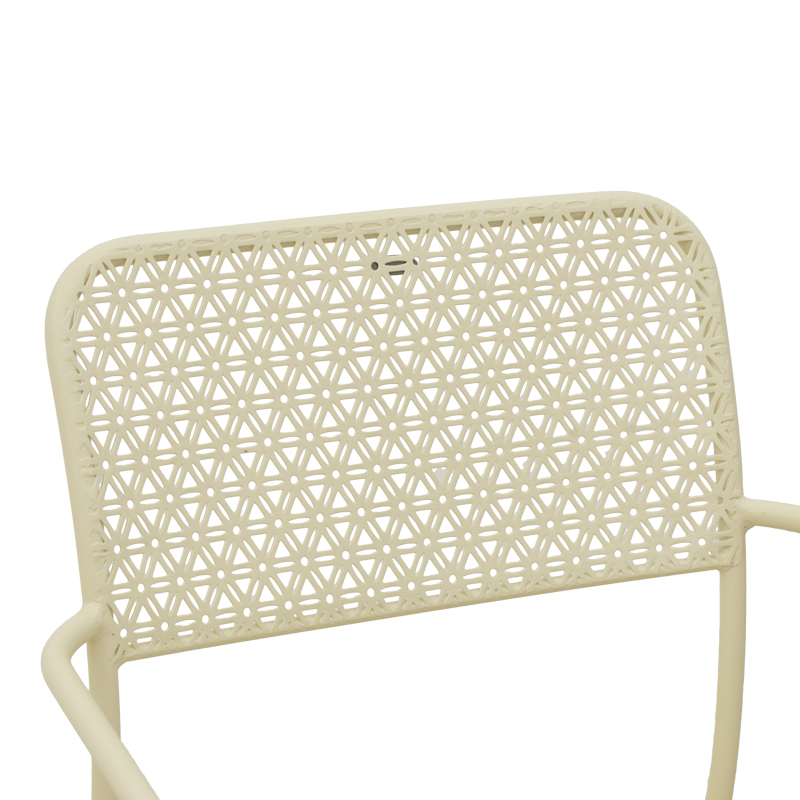 • Διάτρητο σχέδιο πλάτης και έδρας που προσδίδει μια αέρινη, ανάλαφρη όψη. Αυτό το στυλ επιτρέπει στον αέρα να κυκλοφορεί ελεύθερα, ενώ ταυτόχρονα προσφέρει μια εκλεπτυσμένη, γλυπτική παρουσία στον κήπο σας.