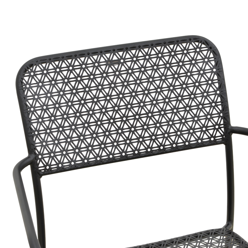 • Διάτρητο σχέδιο πλάτης και έδρας που προσδίδει μια αέρινη, ανάλαφρη όψη. Αυτό το στυλ επιτρέπει στον αέρα να κυκλοφορεί ελεύθερα, ενώ ταυτόχρονα προσφέρει μια εκλεπτυσμένη, γλυπτική παρουσία στον κήπο σας.