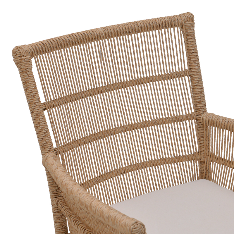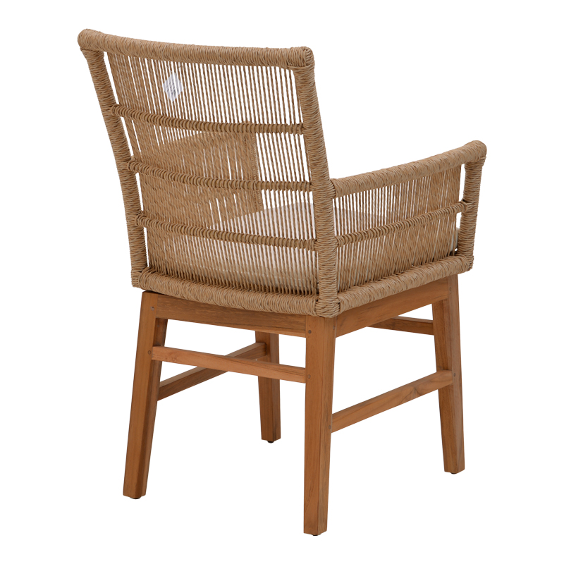 Πολυθρόνα Inca pakoworld teak ξύλο και pe σχοινί σε φυσική-μπεζ απόχρωση με μαξιλάρι 60x61x90εκ