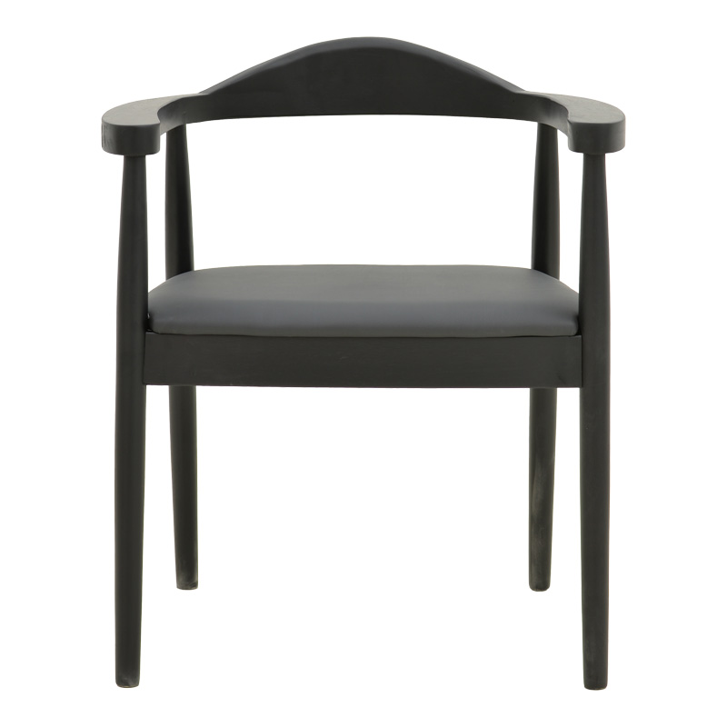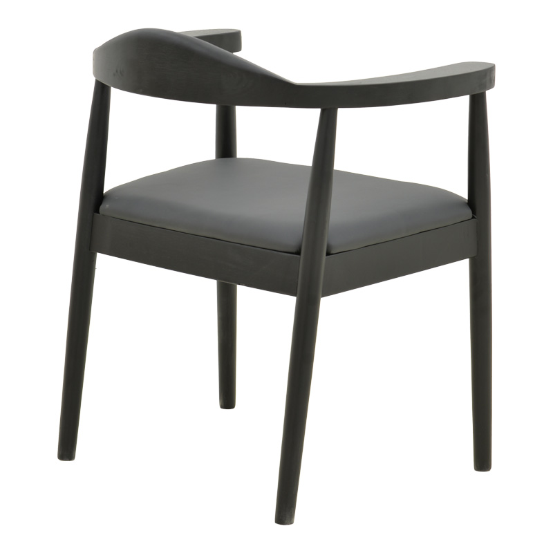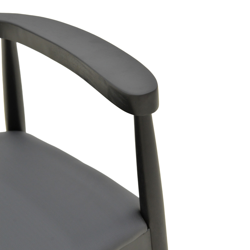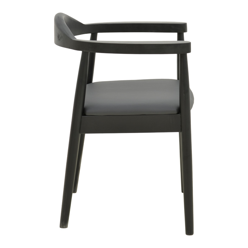 Πολυθρόνα Joube pakoworld rubberwood σε μαύρη απόχρωση με μαύρο pu μαξιλάρι 59x48x73εκ