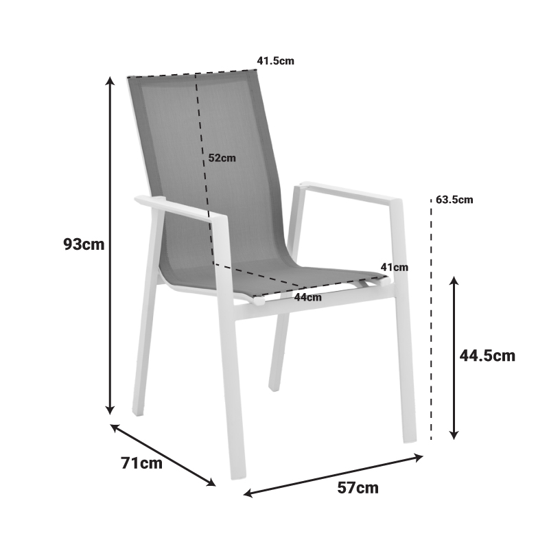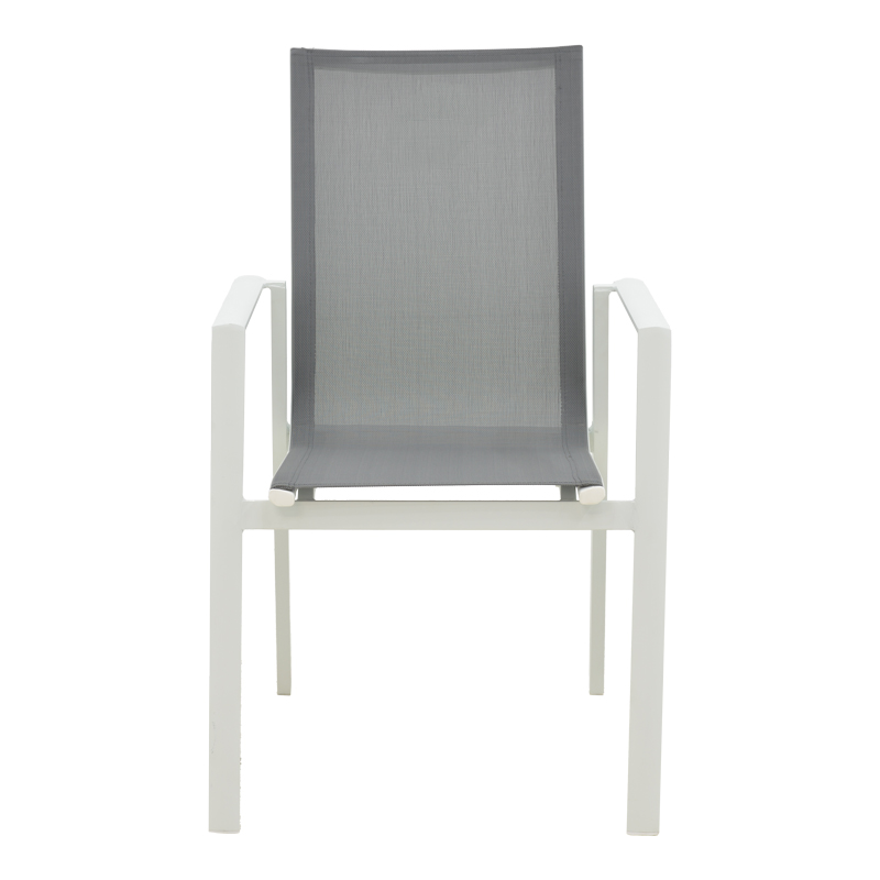 - Σταθερός σκελετός από εξαιρετικής ποιότητας αλουμίνιο με αντοχή στην καταπόνηση και στη φθορά. Κυρίως σώμα καρέκλας από εξαιρετικής ποιότητας textilene. Το textilene είναι ύφασμα μεγάλης αντοχής στην ηλιακή ακτινοβολία και την υγρασία ενώ παράλληλα αφήνει το δέρμα να “αναπνέει” δημιουργώντας έτσι άνεση στο κάθισμα.