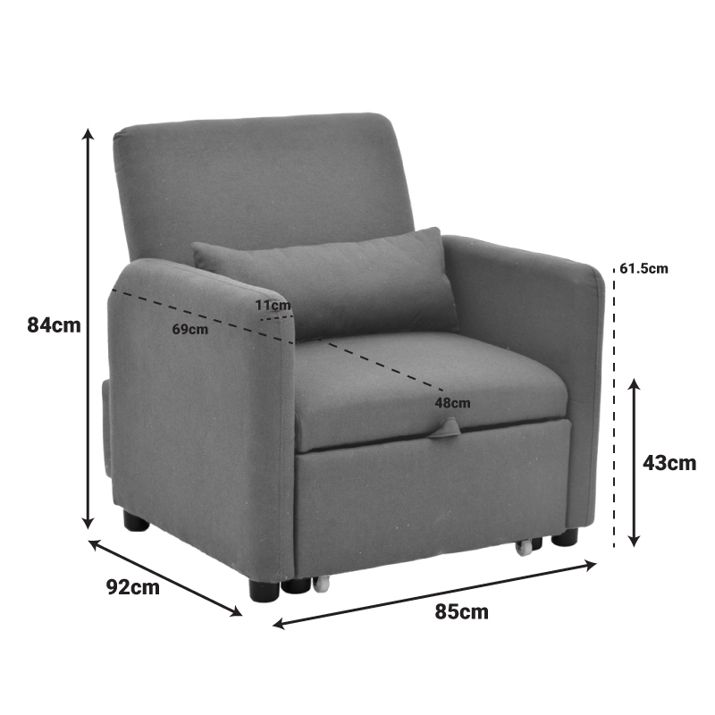 - 2 σε 1 Ευελιξία: Μετατρέπεται αστραπιαία από μια κομψή, αναπαυτική πολυθρόνα σε ένα άνετο κρεβάτι. Λειτουργεί ως πολυθρόνα TV, γωνιά ανάγνωσης ή μονό κρεβάτι φιλοξενίας.Φέρει εύχρηστο μεταλλικό μηχανισμό «click-clack» που με μία μόνο κίνηση μετατρέπει τον καναπέ σε κρεβάτι και το αντίστροφο.
