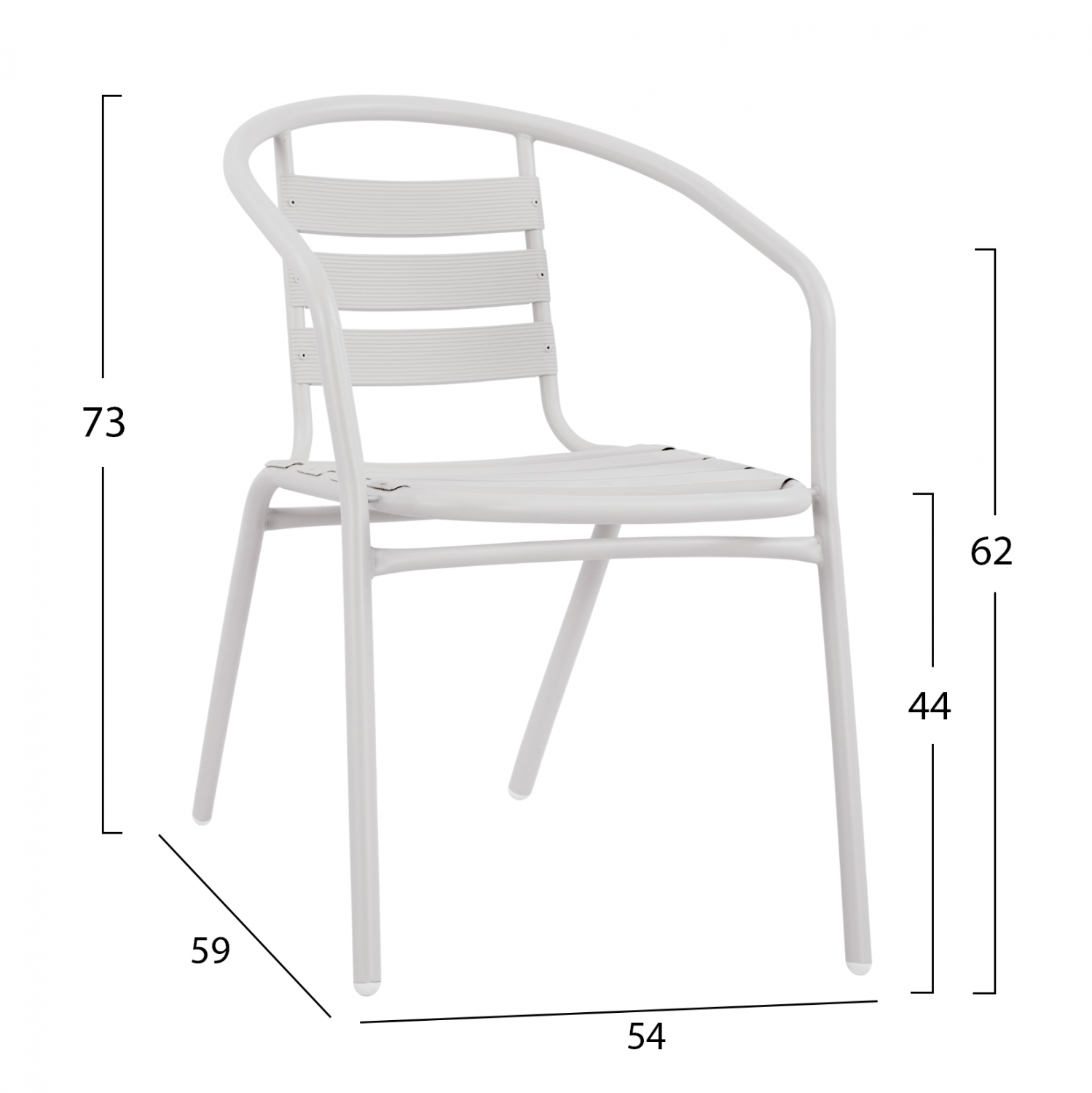 Πολυθρόνα LAURA, μεταλλική με φέτες αλουμινίου στην βάση και στην πλάτη της,