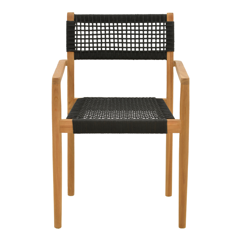 Πολυθρόνα Lengan pakoworld σκελετός teak ξύλο σε φυσική απόχρωση-μαύρο σχοινί 54x52x80εκ