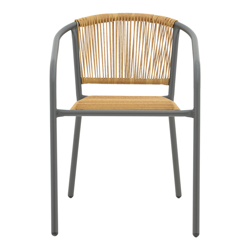 Πολυθρόνα Lindaria pakoworld στοιβαζόμενη μέταλλο σε ανθρακί και pe rattan σε φυσική απόχρωση 54x63x74εκ