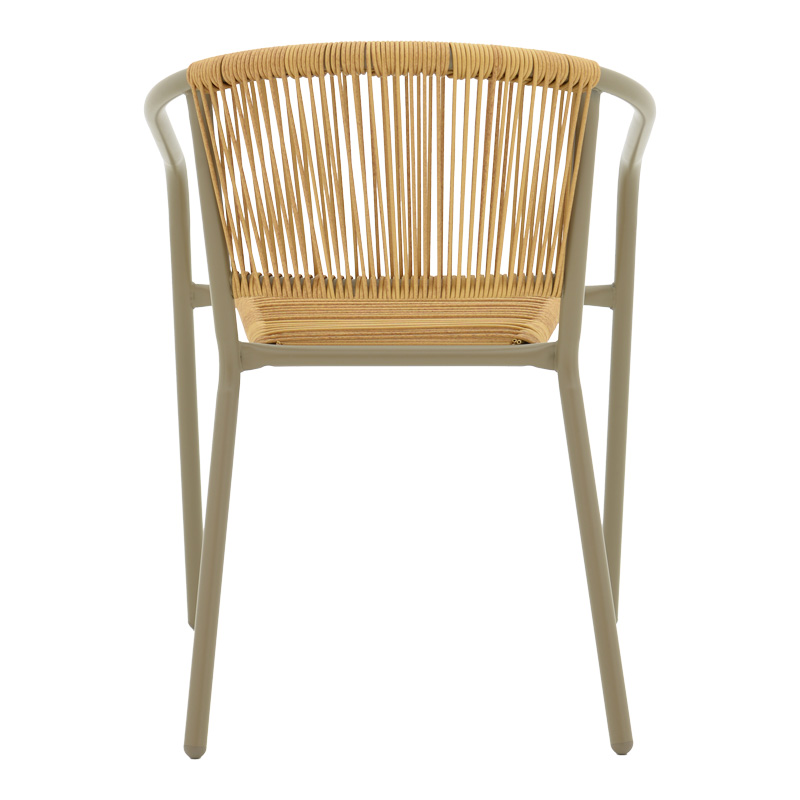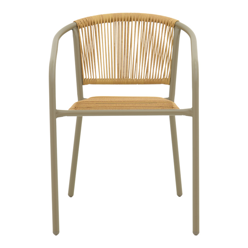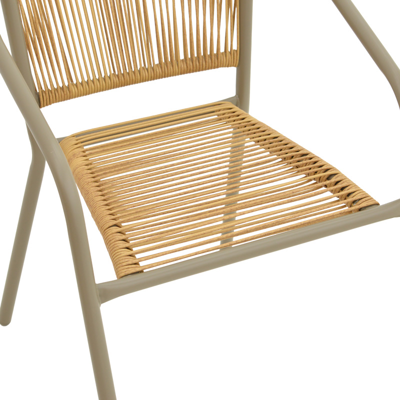 Πολυθρόνα Lindaria pakoworld στοιβαζόμενη μέταλλο σε σαμπανιζέ και pe rattan σε φυσική απόχρωση 54x63x74εκ