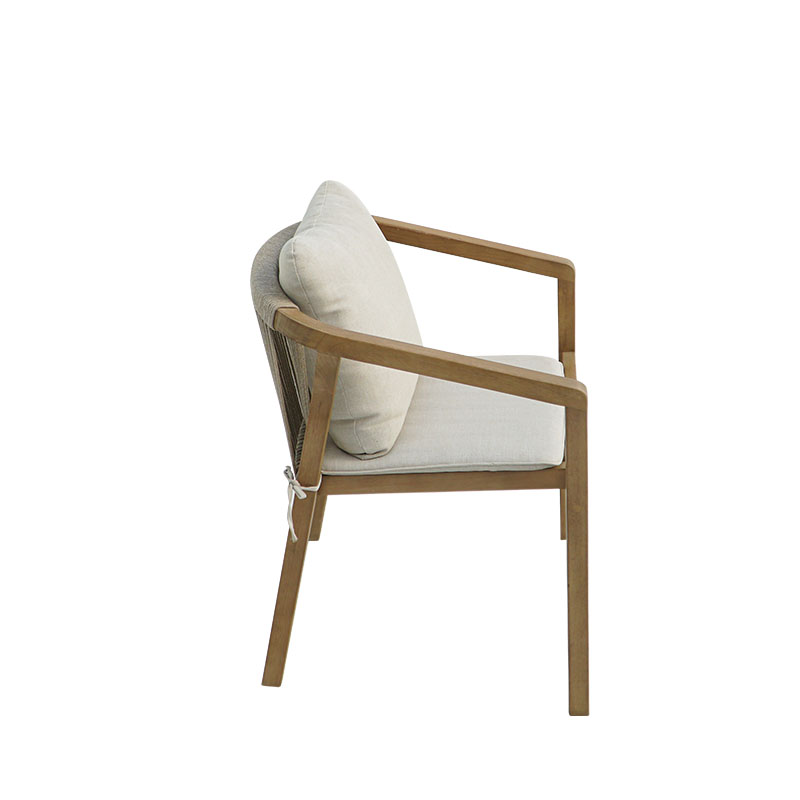 Malibu II είναι μια πολυθρόνα που θα σας ενθουσιάσει και θα σας εντυπωσιάσει! Είναι κατασκευασμένο από ανθεκτικό φυσικό ξύλο ακακίας έχει τοποθετηθεί σχοινί στα πλαϊνά και στην πλάτη που εκπέμπει στυλ σε συνδιασμό με τις ξύλινες επιφάνειες. Ένα πανέμορφο ξύλο με ιδιαίτερους χρωματισμούς και χρειάζεται σωστή συντήρηση ώστε να μην σκουραίνει το χρώμα του και να παρατείνουμε την διάρκεια ζωής του. Η φυσική και ισχυρή αντοχή του σε συνδυασμό και με την ομορφιά του το καθιστούν ιδανικό ξύλο για έπιπλα εξωτερικού χώρου καθώς είναι ανθεκτικό στο νερό και ιδανικό για σημεία που βρίσκονται σε συχνή επαφή με υγρά. Μπορεί να χρησιμοποιηθεί για οικιακή και επαγγελματική χρήση.
