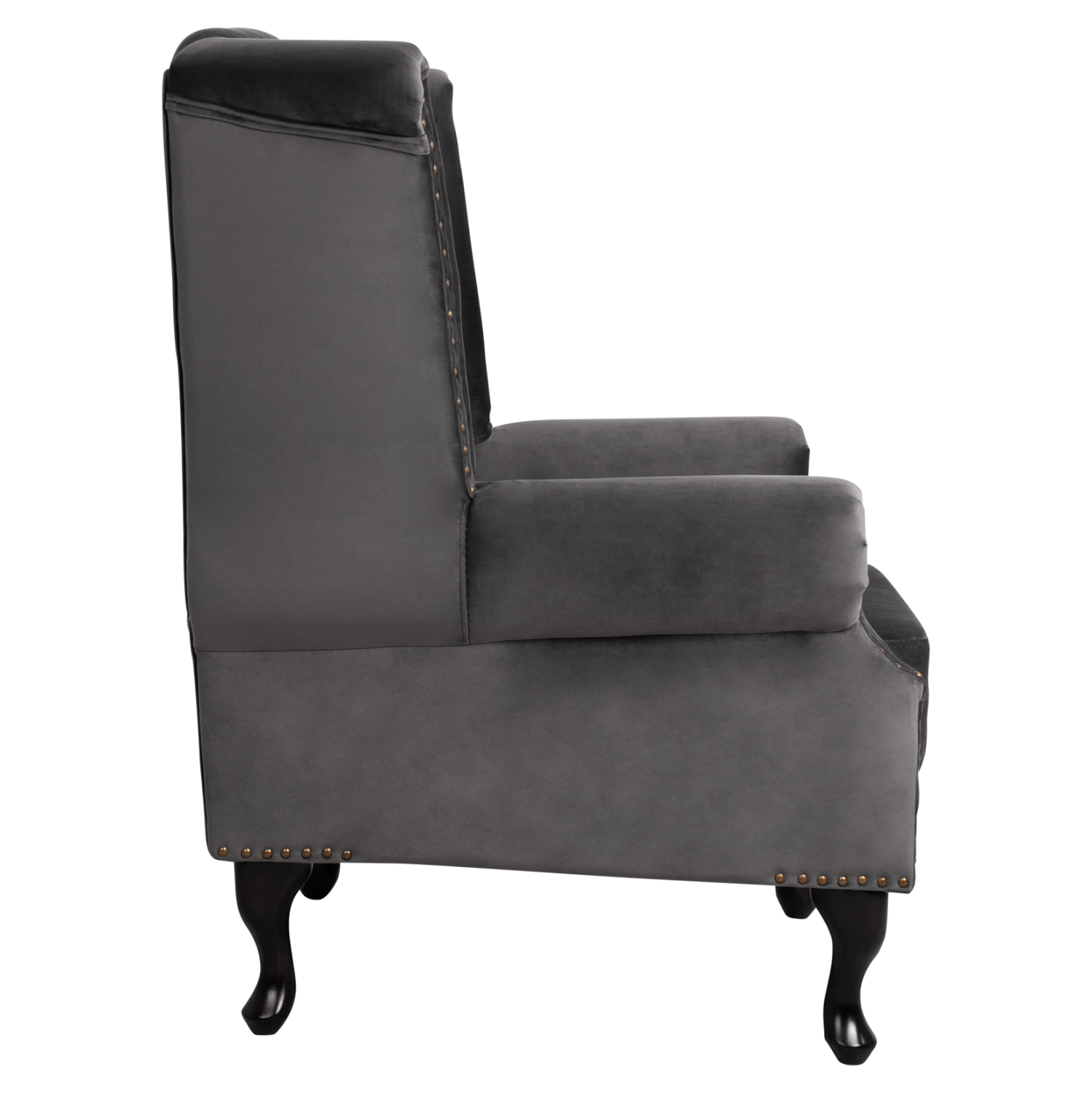Αυτή είναι η μπερζέρα ΗΜ0053.10 σε ΓΚΡΙ χρώμα και ξύλινα πόδια σε μαύρο χρώμα. Το χαρακτηριστικό που κάνει αυτή την πολυθρόνα να ξεχωρίζει είναι ότι η τεχνοτροπία της είναι σε στυλ Chesterfield, πράγμα που δίνει την αίσθηση κύρους και πολυτέλειας οπουδήποτε κι αν χρησιμοποιηθεί. Το κύριο χαρακτηριστικό αυτού του στυλ, είναι η επένδυση με βελούδινο ύφασμα εξαιρετικής ποιότητας, το οποίο στην πλάτη είναι σε βαθιά καπιτονέ τεχνοτροπία, υπηρετώντας το στυλ Chesterfield.