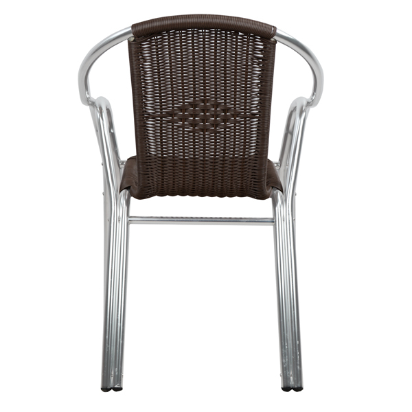 Πολυθρόνα NOEL, εξωτερικού χώρου με σκελετό από διπλό αλουμίνιο και καφέ rattan pvc μεγάλης αντοχής σε ήλιο και βροχή.