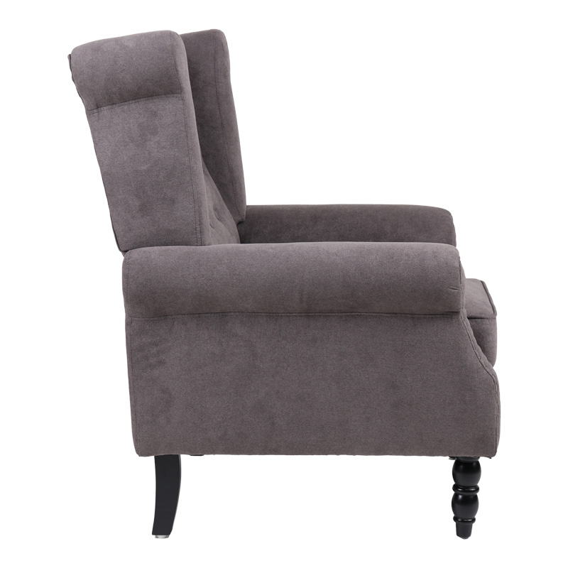 Πολυθρόνα Piore pakoworld ανθρακί ύφασμα και πόδι rubberwood σε μαύρη απόχρωση 77x80x106εκ