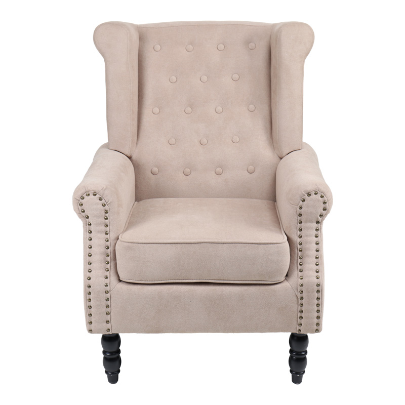 Πολυθρόνα Piore pakoworld μπεζ ύφασμα και πόδι rubberwood σε μαύρη απόχρωση 77x80x106εκ