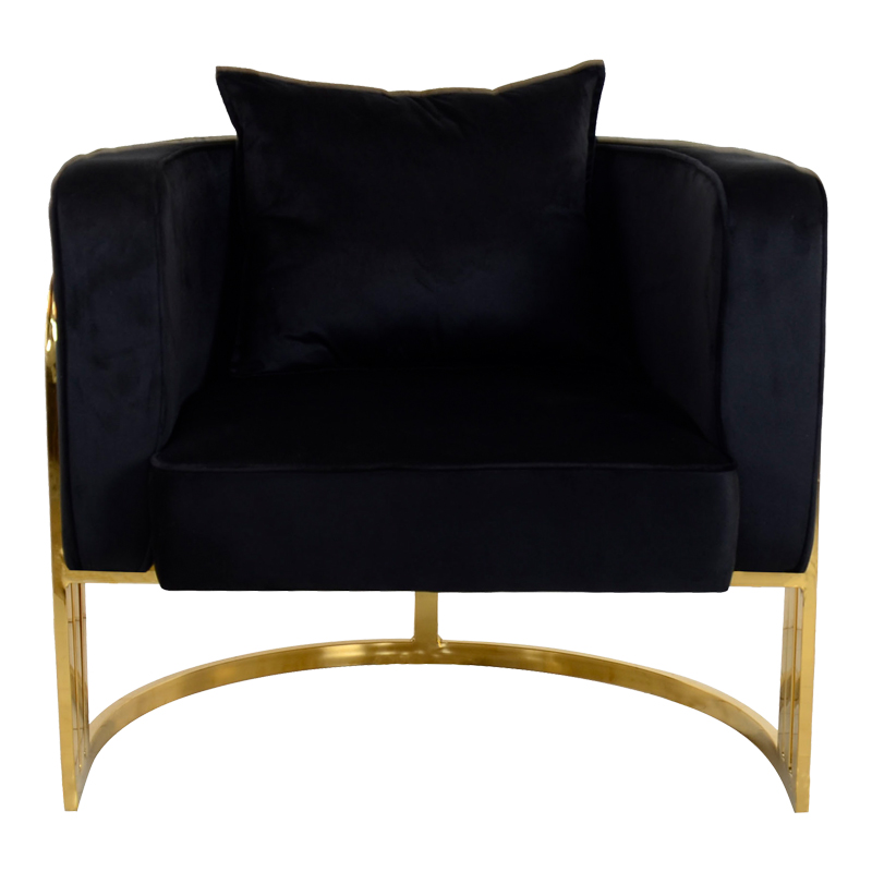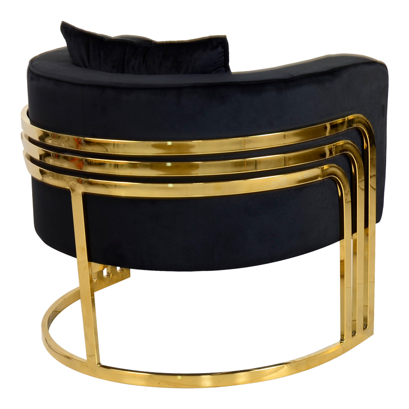 Πολυθρόνα Roblu pakoworld χρυσό μέταλλο και βελούδο σε μαύρη απόχρωση 72×77.4×70εκ