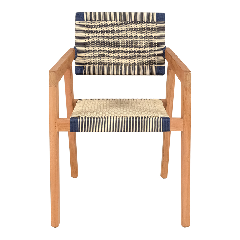 Πολυθρόνα Salama pakoworld σκελετός teak ξύλο σε φυσική απόχρωση και κρεμ-μαύρο pe σχοινί 57x60x85εκ